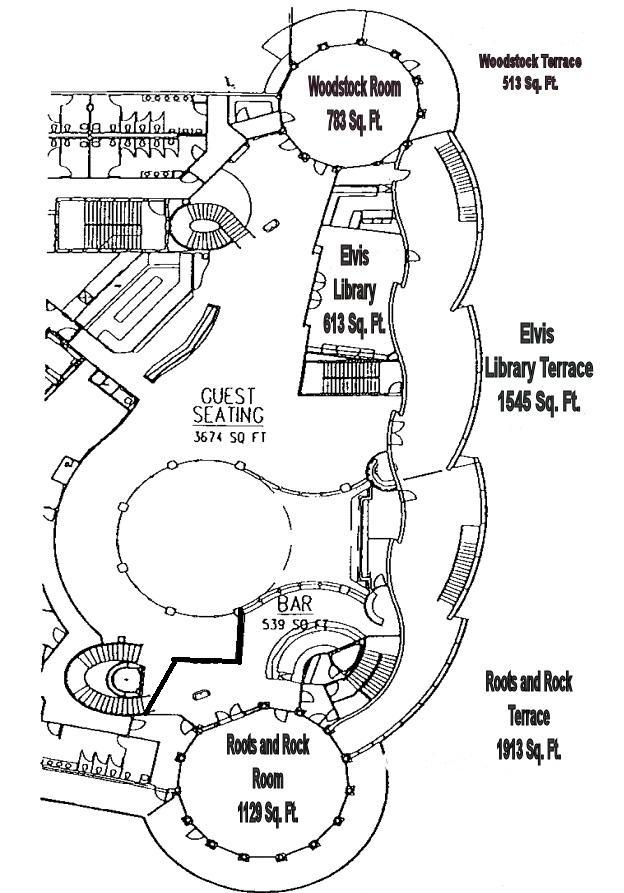 Stand with your guests among giants and look through Buddy Holly’s famous black glasses in the Roots of Rock Room and Terrace with a color changing vaulted domed ceiling complete with hand painted cherubs! Optional outdoor terrace expands the space and also can be combined with the John Lennon Room and Terrace to create a truly unique space!