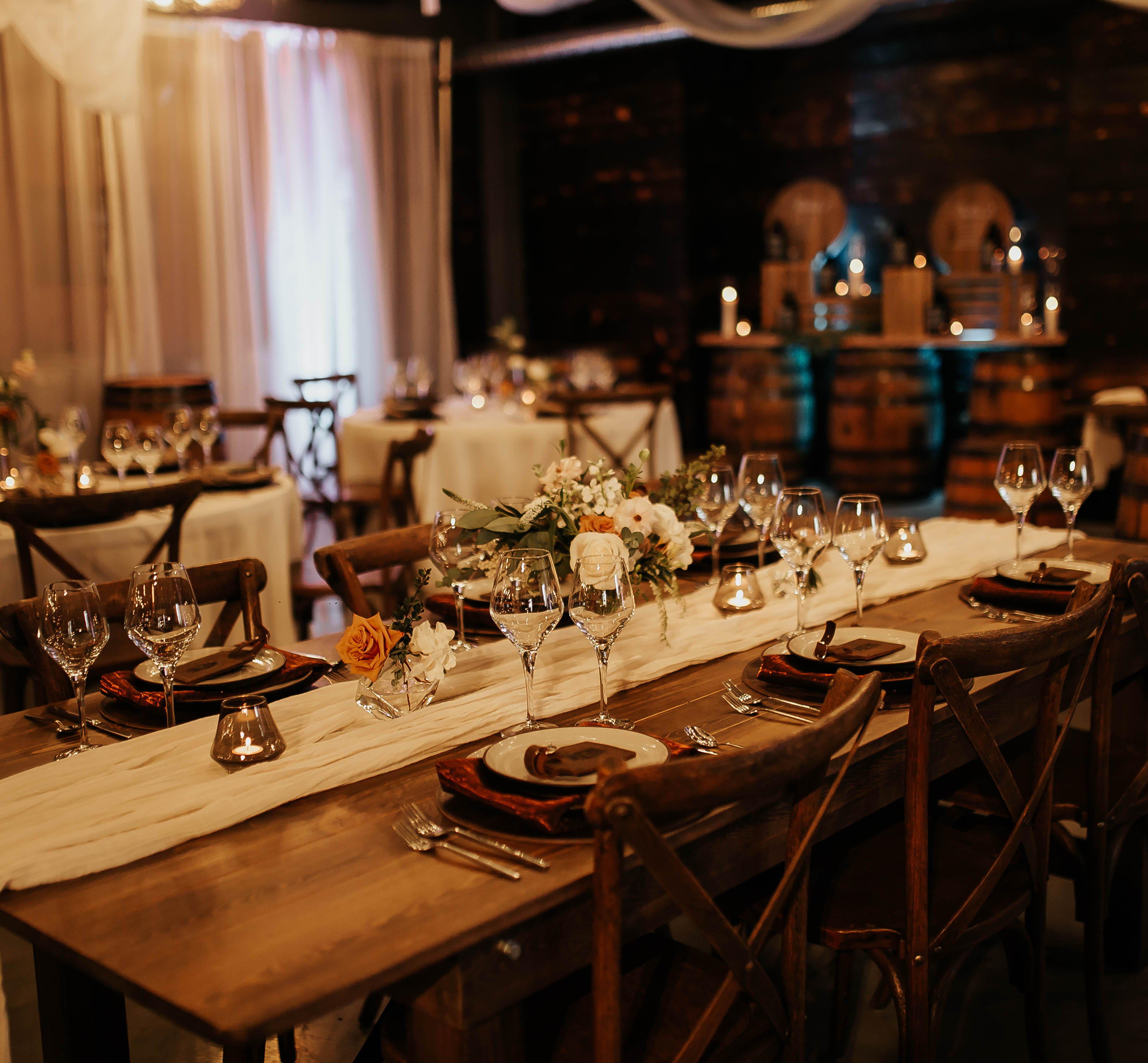Craft Your Dream Wedding with Unforgettable Memories Made Here. Hard Truth Distilling Co. offers unique indoor and outdoor ceremony and reception spaces, customizable to reflect your one-of-a-kind love story. Let us help you craft a truly special day. Accommodate up to 120 guests with Indoor and outdoor ceremony and reception spaces available. Customizable floor plans. Ceremony & reception packages available. Bachelor & bachelorette party packages available. In-house catering and bar options. Dedicated event manager throughout the entire planning process. Plus so much more!
