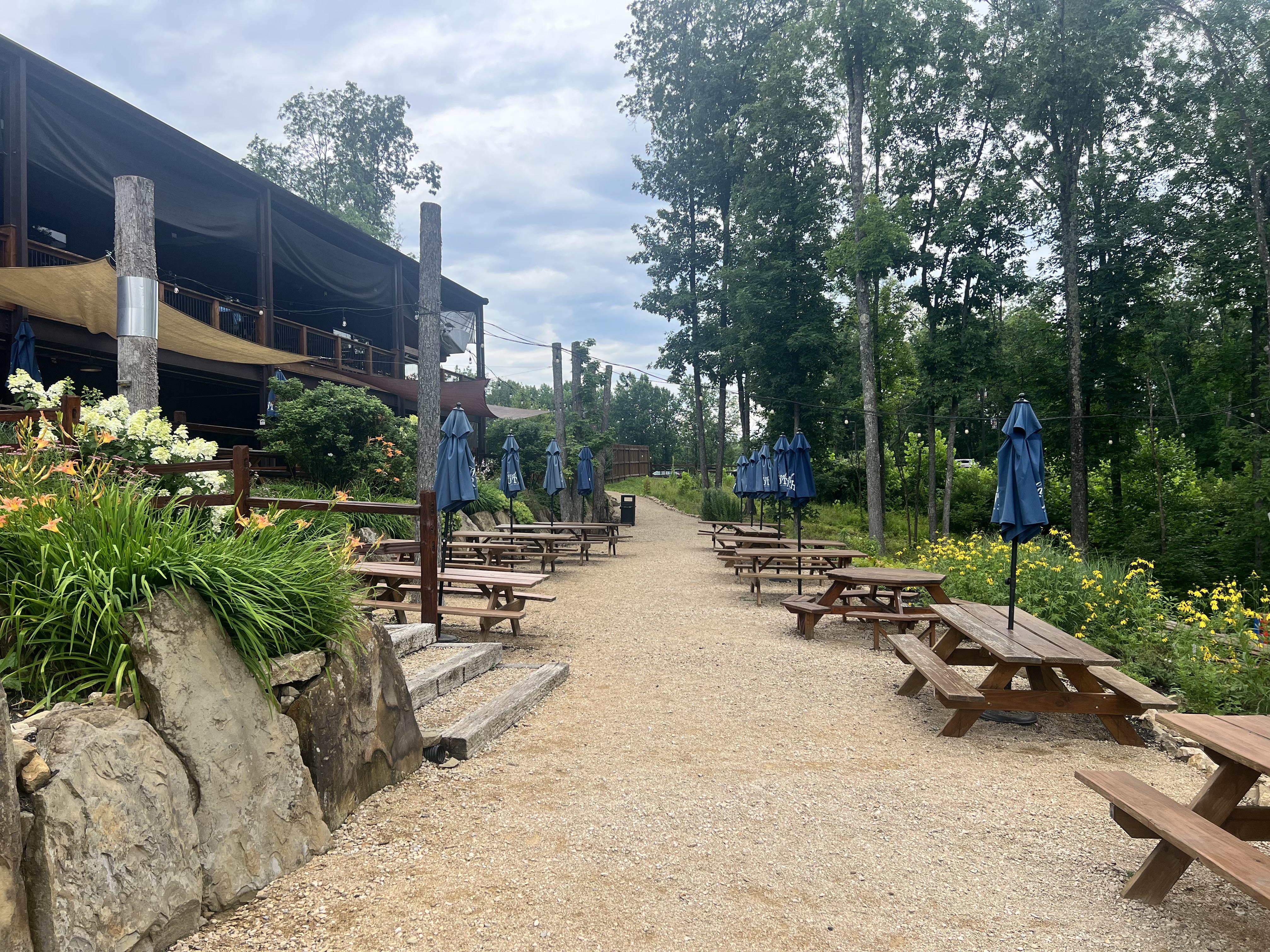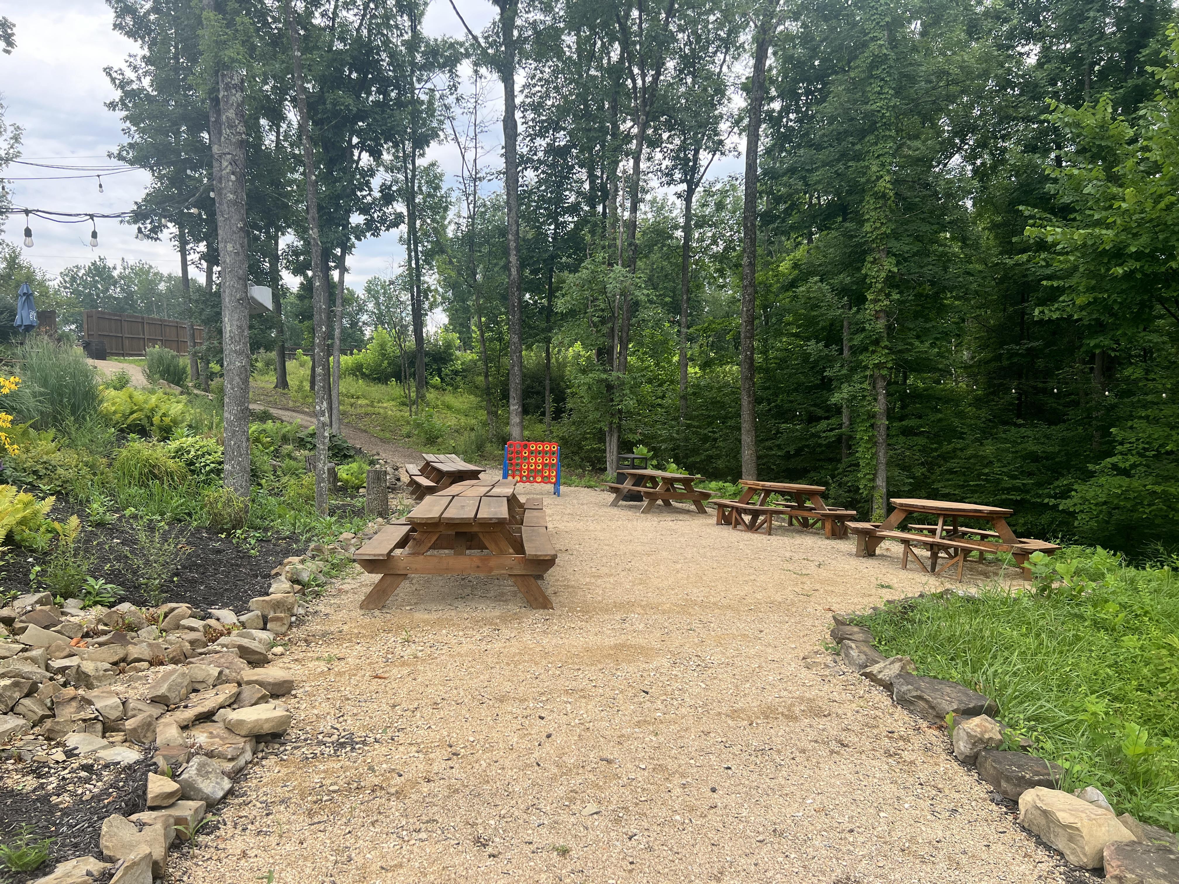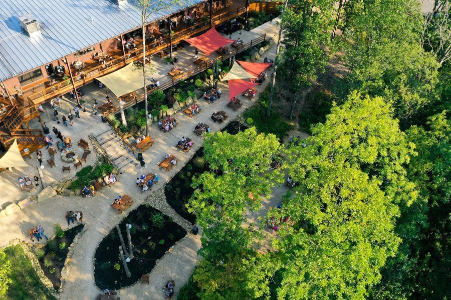 This versatile outdoor space can accommodate groups that range in size, with several different areas available to configure the ideal event space for your special event. -Semi-private -Seats from 6-50 -Pop-up bar and/or private cookout experience available as add-ons -Areas to choose from include fire pits, reserved picnic tables, prime stage viewing areas, a semi-covered patio, and more.