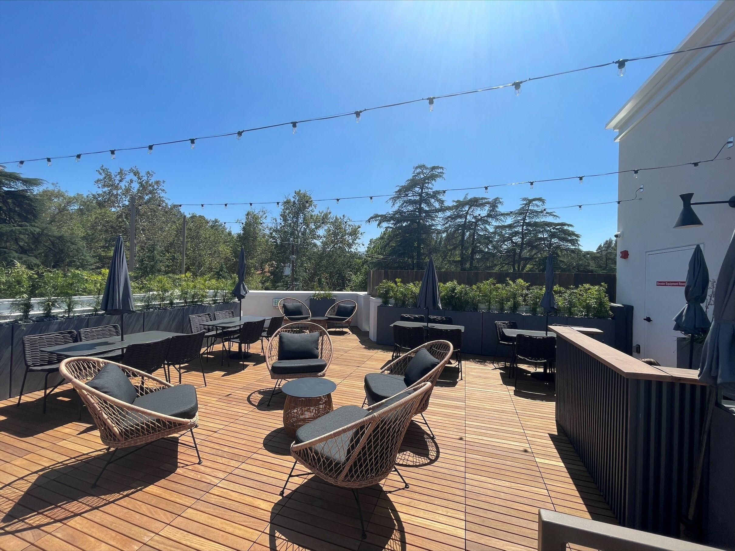 In the upper level, a seating is available on the rooftop deck for guests to mingle, enjoy cocktails, and sample hors d’oeuvres. Friends and family can order drinks from the satellite bar and share conversations under the stars.
