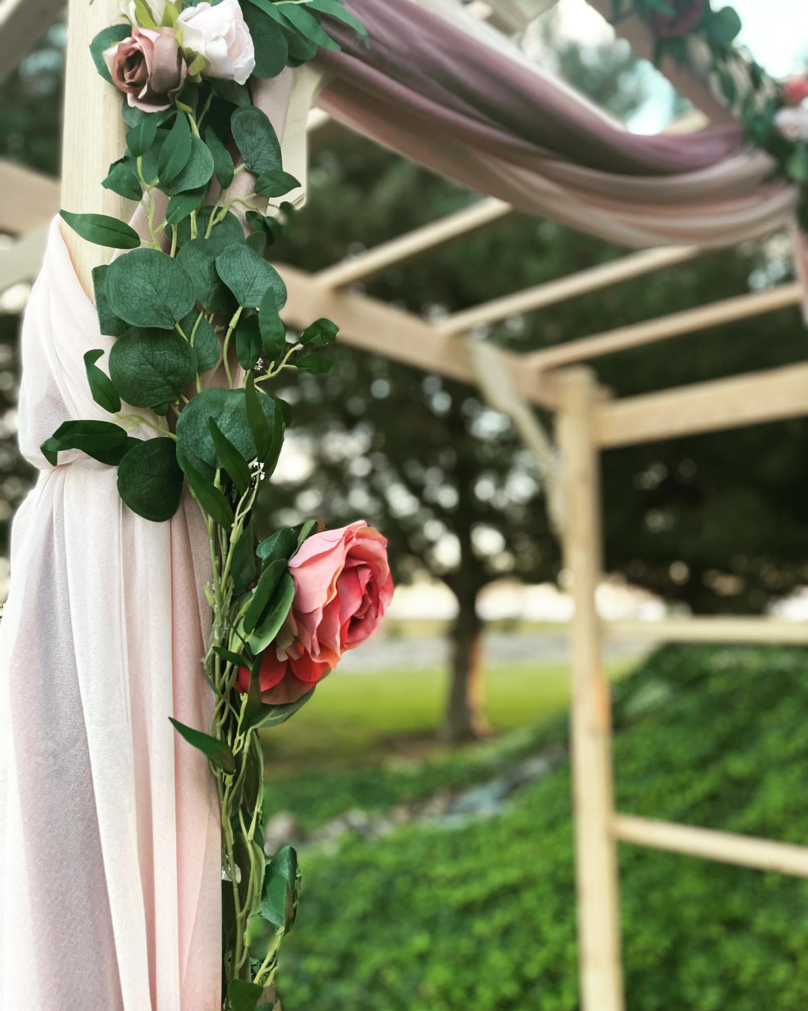 This package includes 2-hour venue rental, day-of coordination, officiant, arbor, cake and champagne.