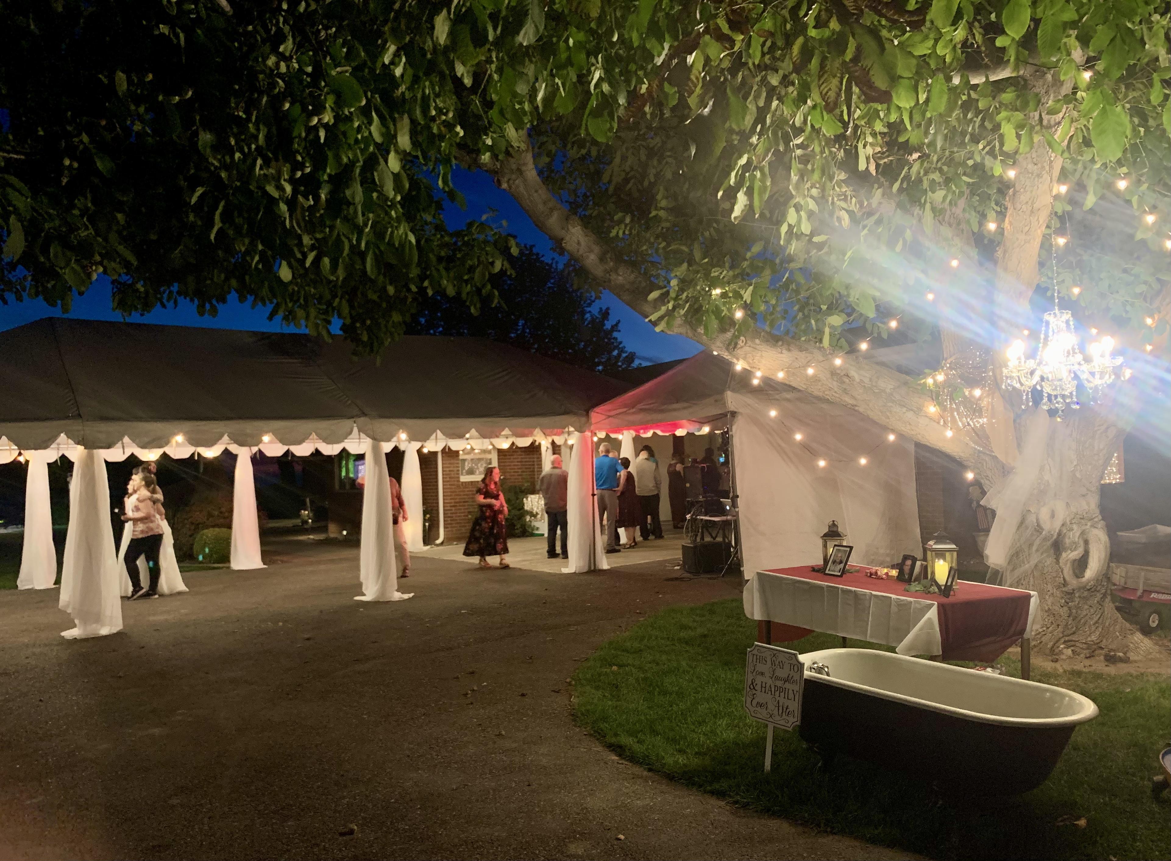Our All-Inclusive Package provides daily venue rental, day of coordination, early access for set up, a 30x40 Canopy Tent with String Edison Lights, Chandeliers and Canopy Leg Drapes, Tables, Linens, and Chairs. Optional Officiant provided upon request. *This package serves a maximum of 200 guests. Additional guests are charged at an additional fee.