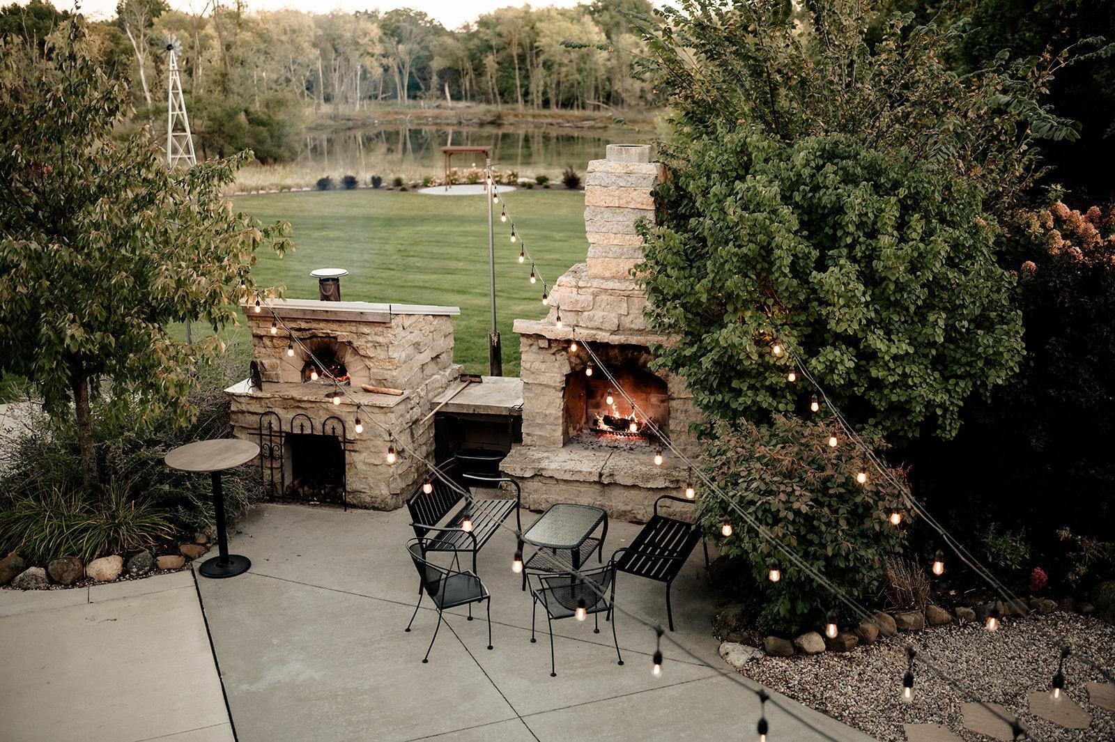 Our outdoor space has 3 outdoor ceremony location options, a large outdoor patio with a bar/lounge area & a beautiful outdoor fire place... all overlooking the pond and gorgeous backdrop! After the ceremony, your guests can enjoy cocktail hour on the back patio or take a stroll down the nature trail. Meanwhile, the wedding party/family can take advantage of the endless locations for photos around the property!