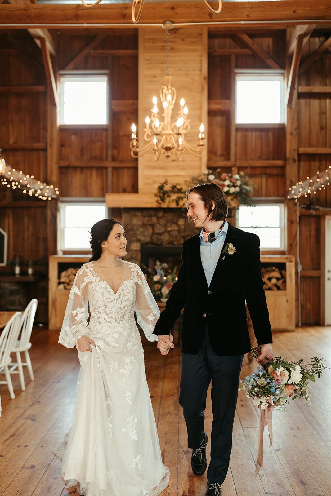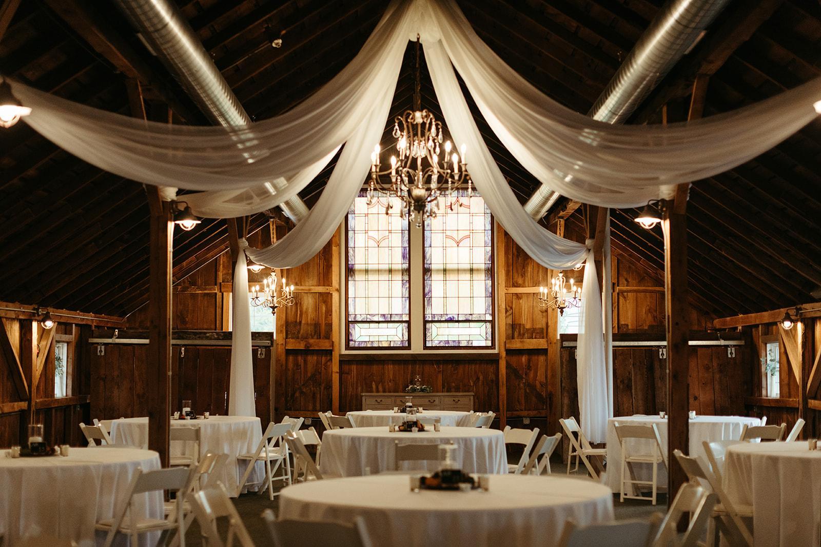 Our interior space is heated/air conditioned for year round comfort. The venue features beautiful wood floors throughout eliminating the need to rent a dance floor. A beautiful Indoor ceremony space in barn loft in the event of rain or for winter weddings. We have wheelchair accessible restrooms located on the main level. The lower level features a large bridal suite with a private bathroom, an additional dressing room, plus additional restrooms for guests. Ceremony max- 200 Reception max- 225