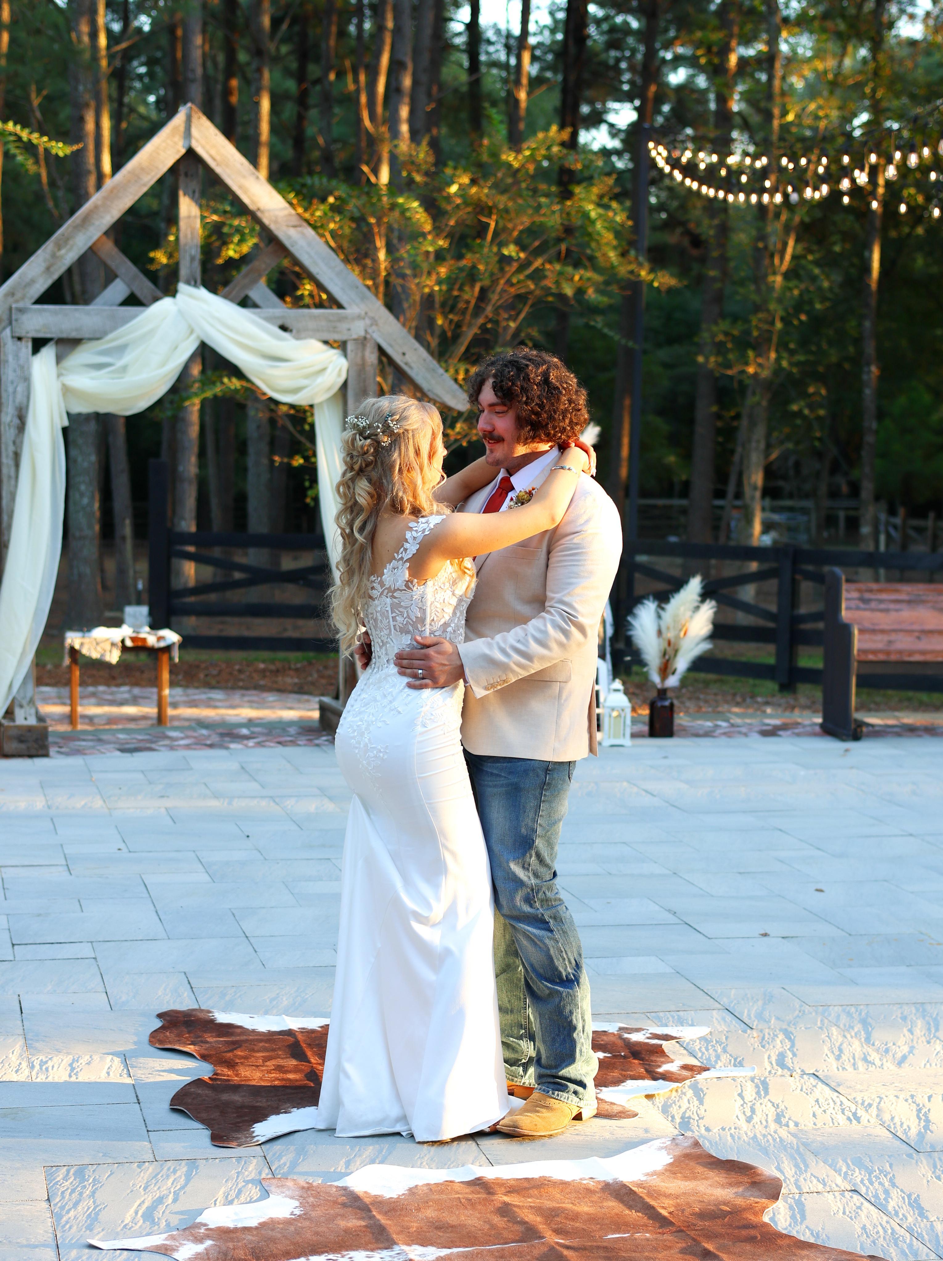 Harvest Place Farm offers a breathtaking outdoor setting anchored by our handcrafted log and timber-frame horse barn. Surrounded by towering pecan trees, twinkle lights, and natural beauty, the venue blends rustic elegance with a welcoming, peaceful atmosphere. A ceremony surrounded by the barn’s striking wood architecture, your wedding feels timeless, authentic, and unforgettable.