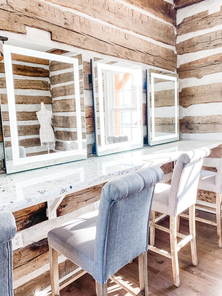 Private 1,000 sq ft modern log cabin separate from, yet within short walking distance to, our reception, ceremony, and Fiance getting ready room spaces. It features 5 hair & makeup stations with ring light mirrors, comfortable lounge seating, private bathroom, private outdoor covered balcony overlooking our grape vines and lakes below, with tons of natural light for amazing photos, PLUS 7am early access included.