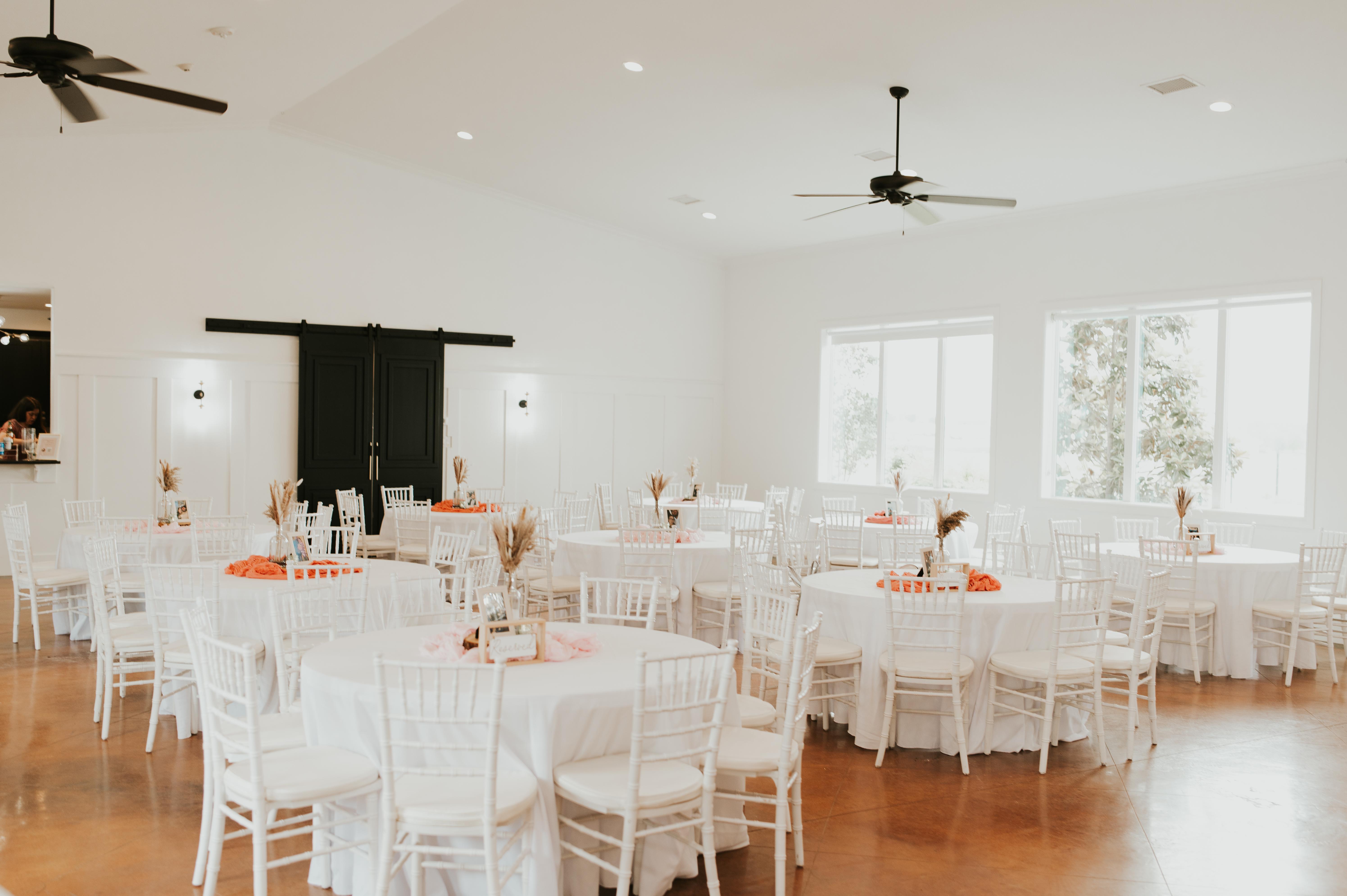 - Dimmers for all lights, including the elegant chandeliers - Tables and chairs pre-set before your arrival - Large backdrops for beautiful photo opportunities