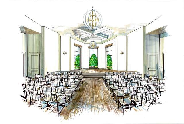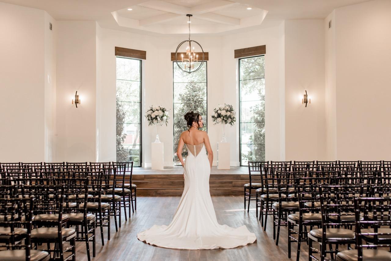 Our beautifully modern Chapel has vaulted ceilings, gorgeous light fixtures, and floor to ceiling windows that allows for ample natural light for gorgeous photography.