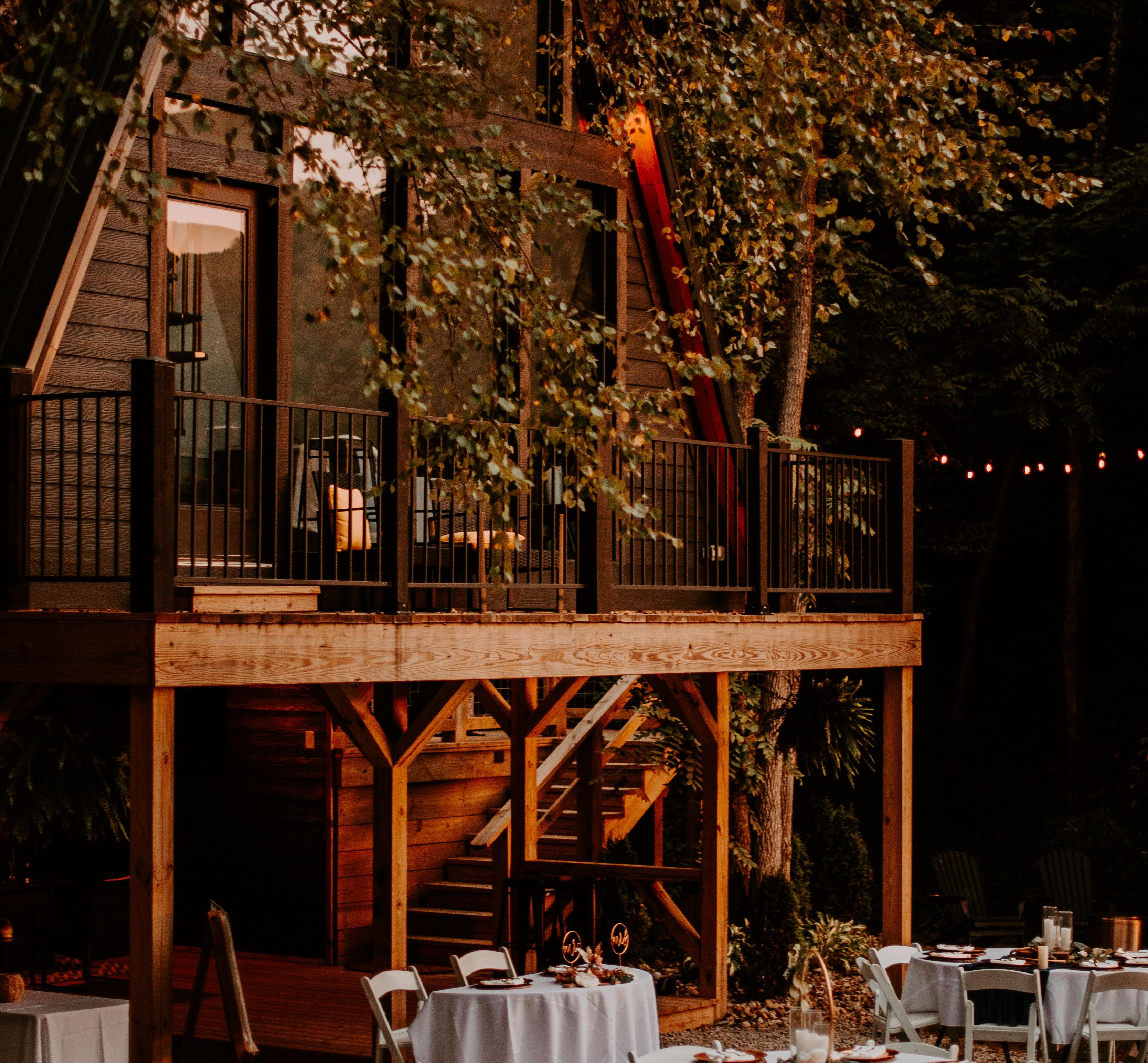 Single cabin 25 guest base package 2 night stay at the Pinnacle 4 tables with linen (round / rectangle) 50 chairs Sweetheart table, cake table & 2 food tables 1 outdoor restroom (handicap accessible) Access to mobile food vendors, electricity & water hookup