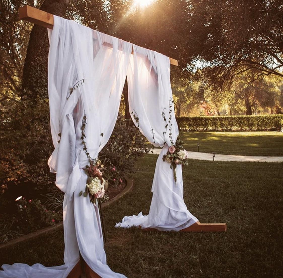 Chairs for 250, two wedding arches to choose from, garden flowers and uplighting