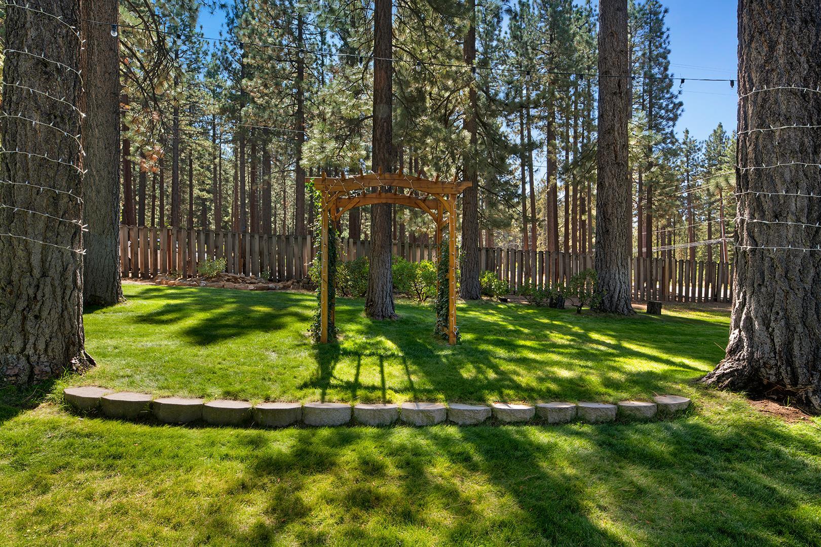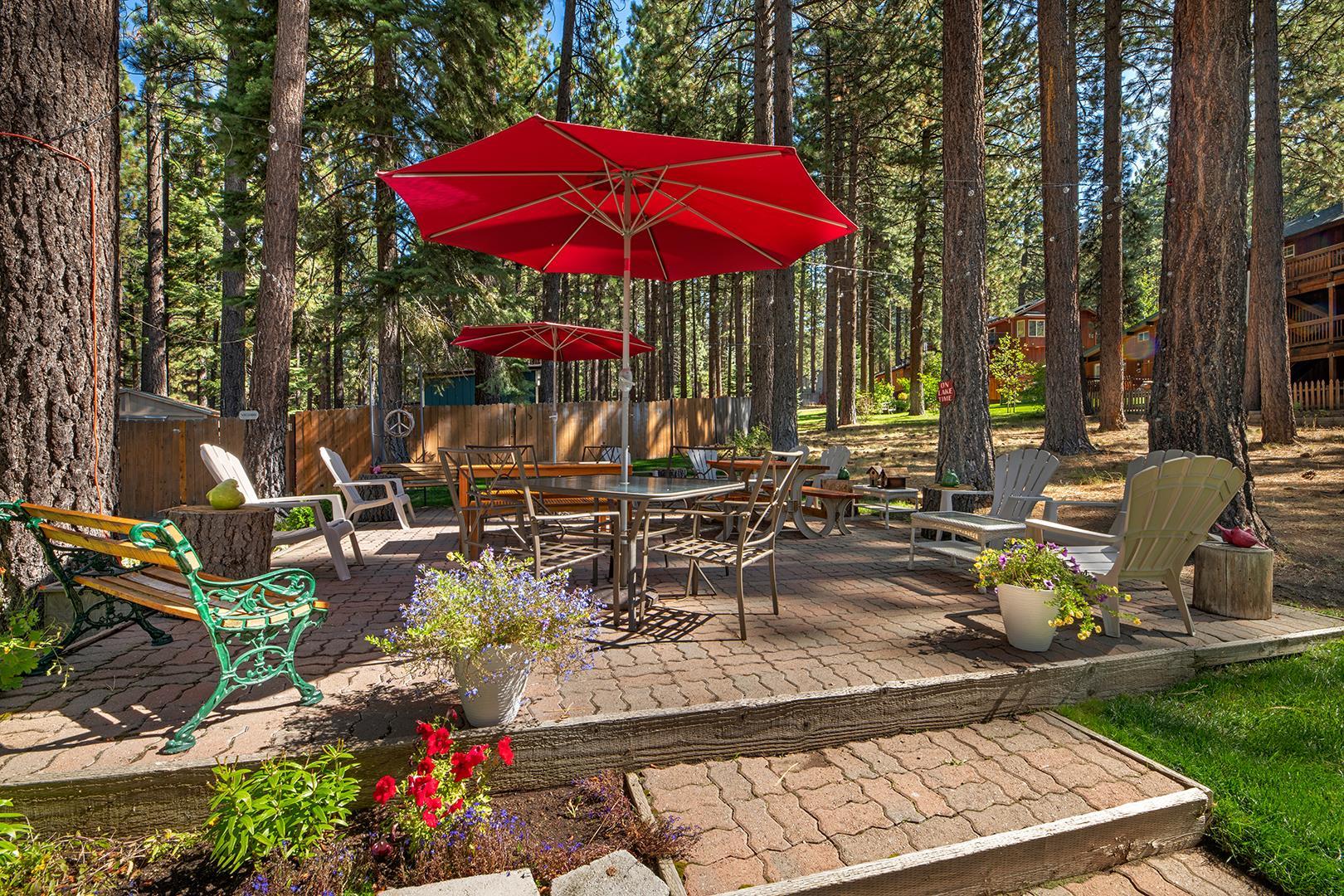 Located blocks from the water and just over a mile to Heavenly Village, our charming property rests on a sprawling and private acre of South Lake Tahoe surrounded by beautiful pines. With a prime location, enjoy the convenience of shuttle service to the Heavenly Mountain Ski Resort and a five-minute drive to the California Ski Lift. Outdoor dining tables and chairs spaced throughout our gardens provide an outdoor area for guests to enjoy a snack or simply take in our peaceful slice of heaven.