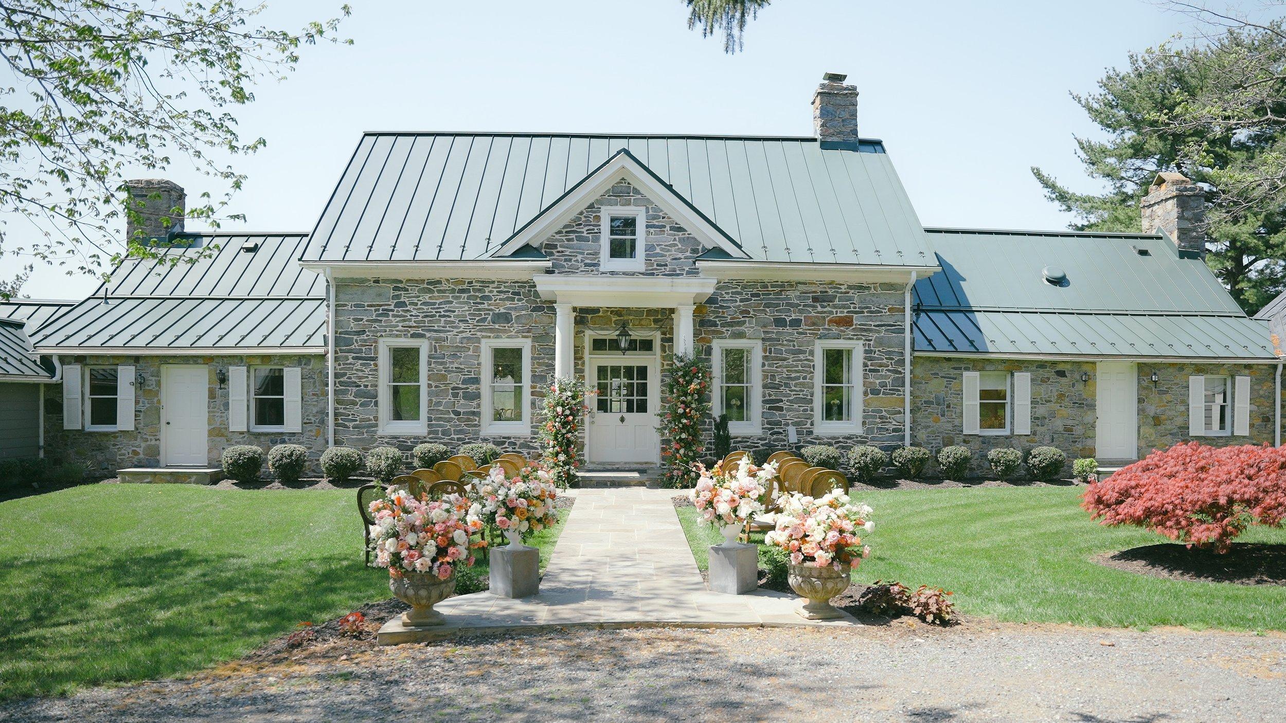 Couples can exchange vows surrounded by nature's beauty under a canopy of trees and in front of the rich history of the stone-clad Derry House.