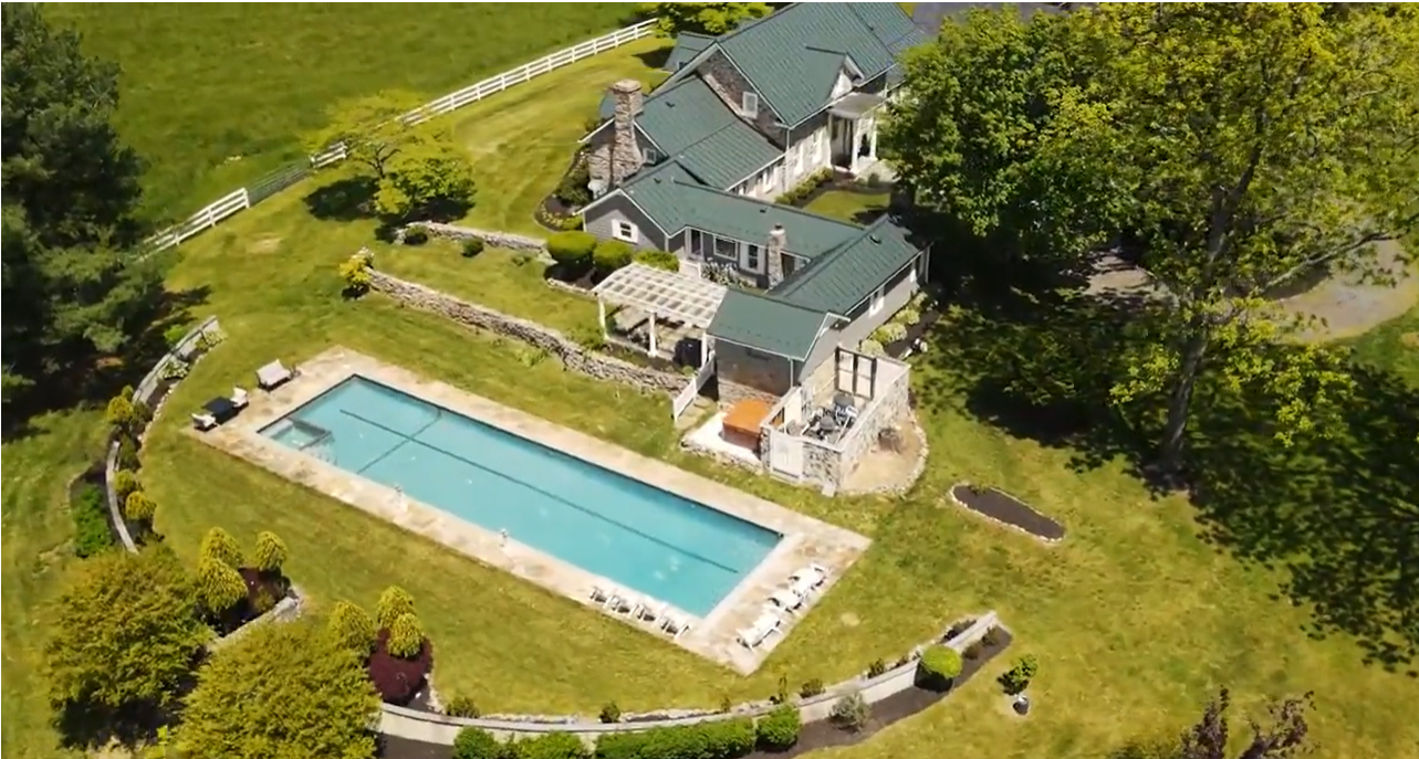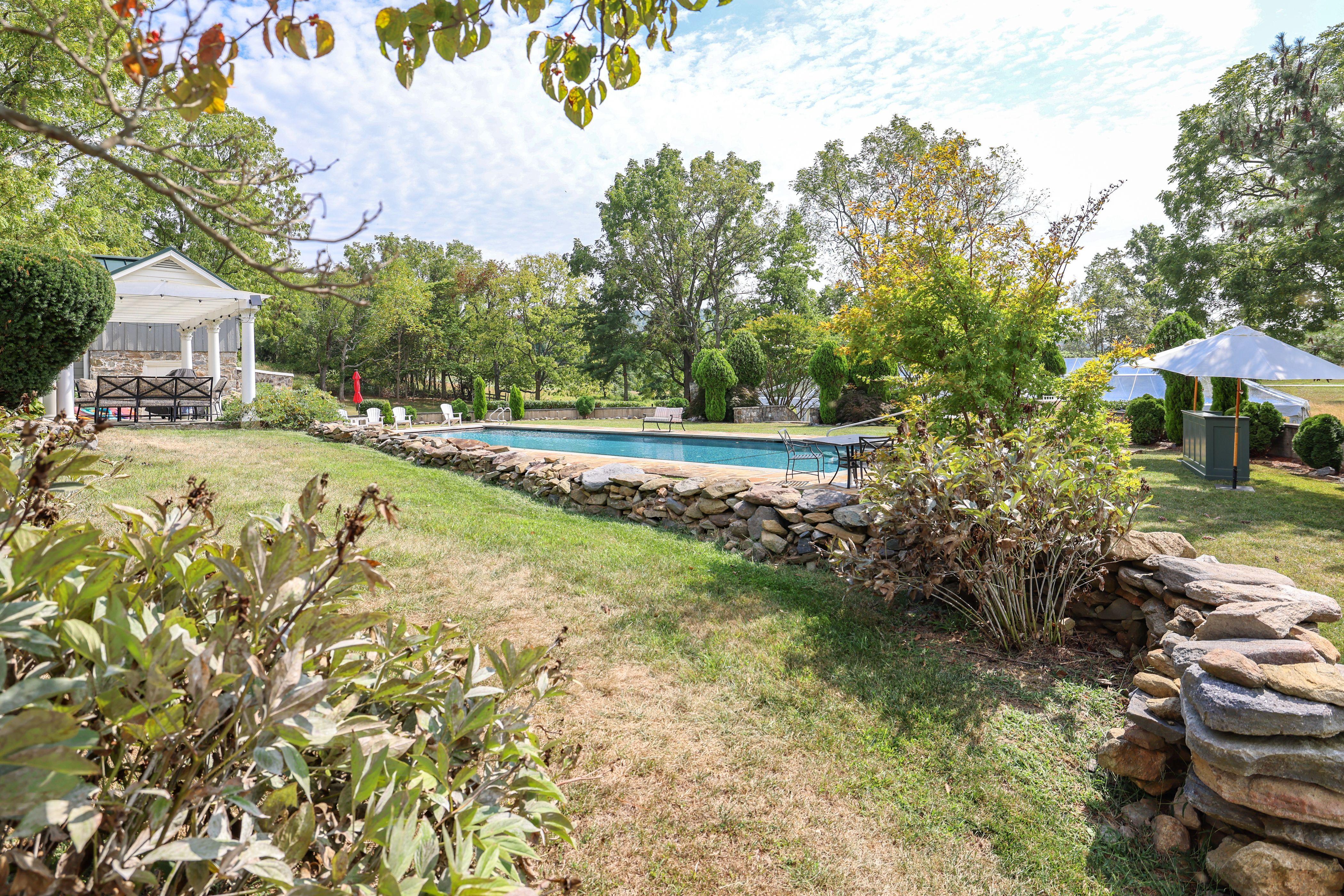 An unparalleled cocktail and reception space with clear top tent, Olympic-size pool, lighted pavilion, overlooking the grounds and nearby vineyards.