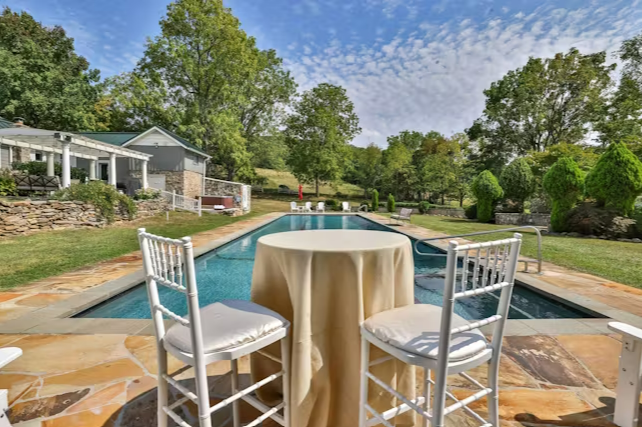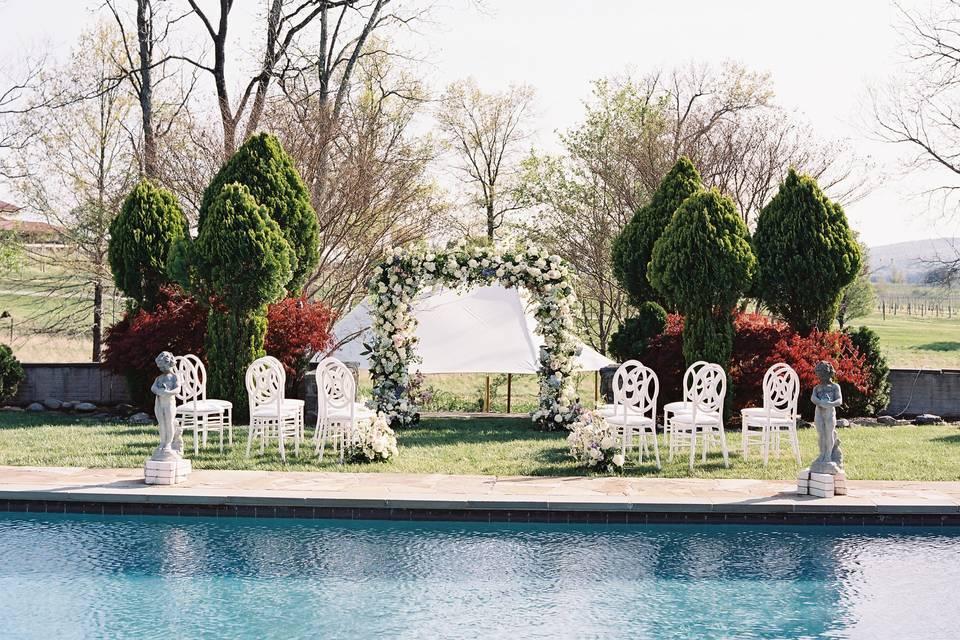 Just steps from the Derry House & overlooking the Spring House Lawn, the Pool Terrace is framed by lush green landscaping, creating a stunning setting for your intimate ceremony. The outdoor oasis seamlessly transitions from a idyllic ceremony space to a vibrant cocktail hour, offering stunning 360-degree views of the Estate, mountains, and vineyards. It’s the ideal location to create unforgettable memories.