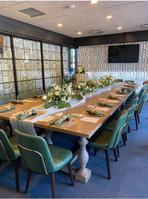 The North Private Dining Room is an airy, bright space offering multiple seating configurations and optional patio space. Fully equipped with a 40” flat-screen TV for all business and special occasion needs.