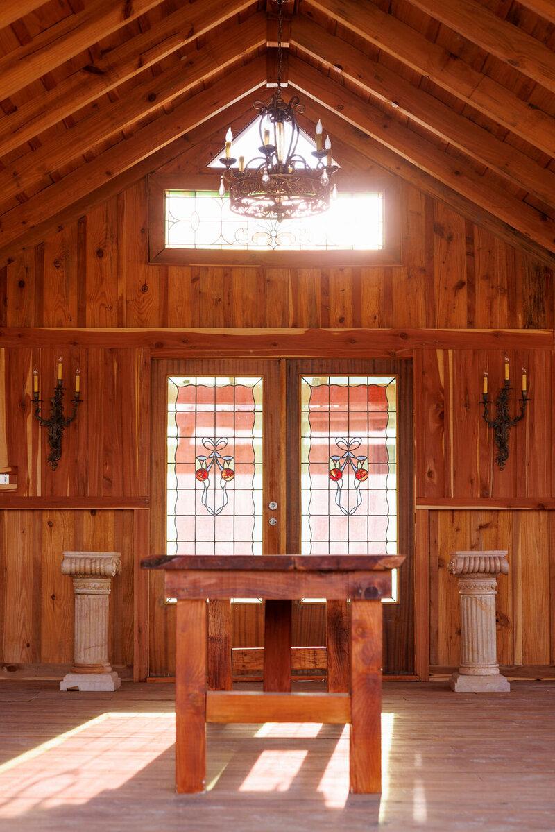 This boutique wedding venue boasts a lovely chapel with the perfect combination of Texas charm and elegant accents. Stained glass windows and crystal chandeliers combine with hand-hewn cedar walls to create the perfect setting for exchanging your vows. The outdoor seating area will accommodate up to 160 guests. An impressive fountain alongside the seating area adds a natural romantic ambiance to the festivities.