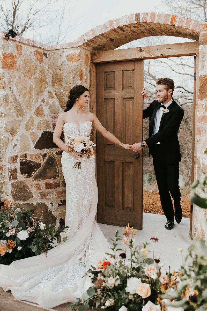 You could not ask for a more beautiful “first look” location than Primera Vista. A tree-lined, stone-paved walkway leads to the secluded photo op. Heavy wood doors and stone-and-brick walls are a striking backdrop for any couple, but the romantic corner also can be dressed up with flowers or lights to create exactly the mood you fancy.