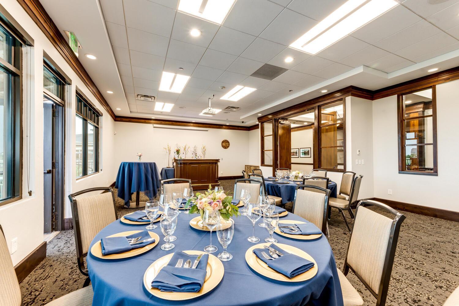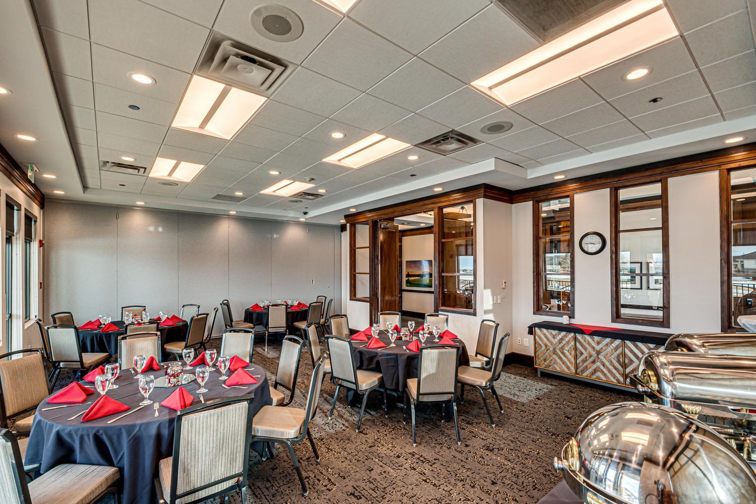 The Windom and Pikes Peak Rooms are two separate rooms that can be broken down into two smaller rooms, accommodating 50 people each, or expanding into our second largest event space in the Clubhouse, fitting 80-120 guests. Adjoining decks for both, allow beautiful views and plenty of natural light.