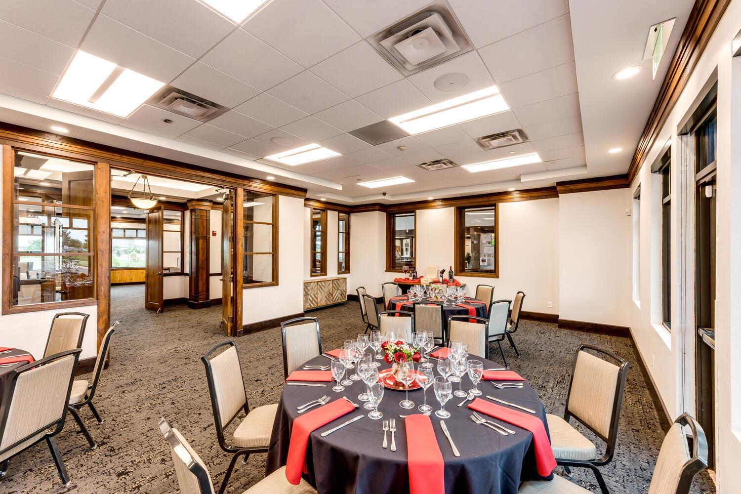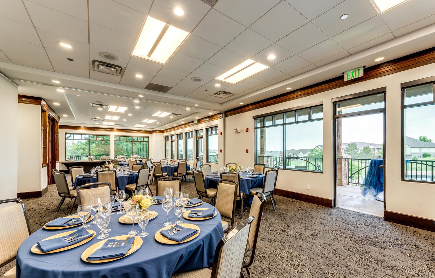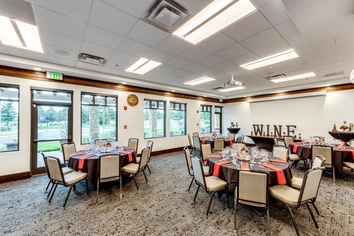 Accommodates 40 guests with tables, 50 guests reception style and 50 guests audience style. The room also has an outdoor balcony overlooking the Rocky Mountains, swimming pool & 18th green.