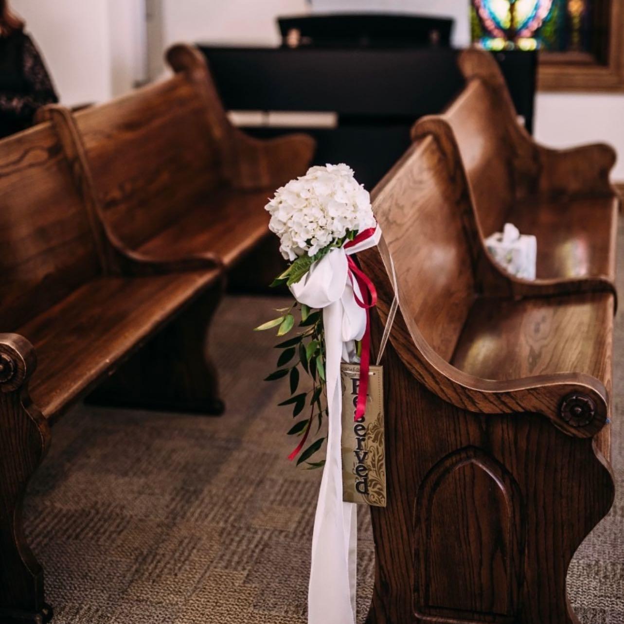 Holding up to 250 guests, our Indoor Chapel is a picturesque location for your ceremony. With beautiful stained-glass windows letting in lots of light, a mixture of pews and chairs for seating flexibility, and convenient side entrance and toasting doors, it’s the perfect venue for a classic wedding style.