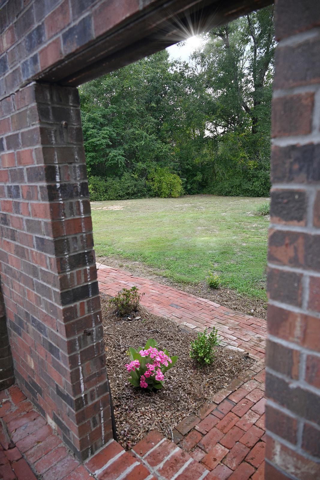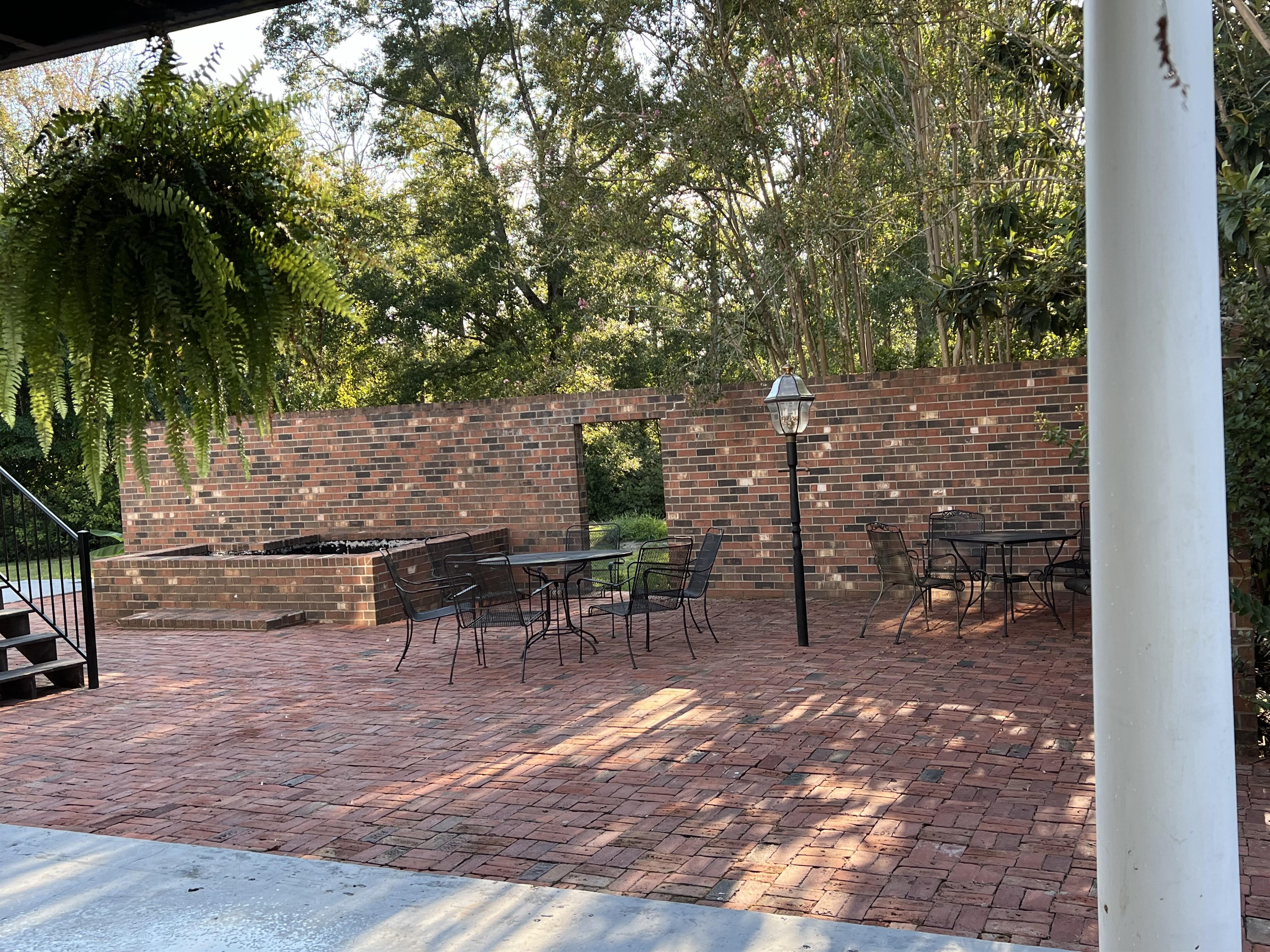 A beautiful outdoor area surrounded by nature and gardens
