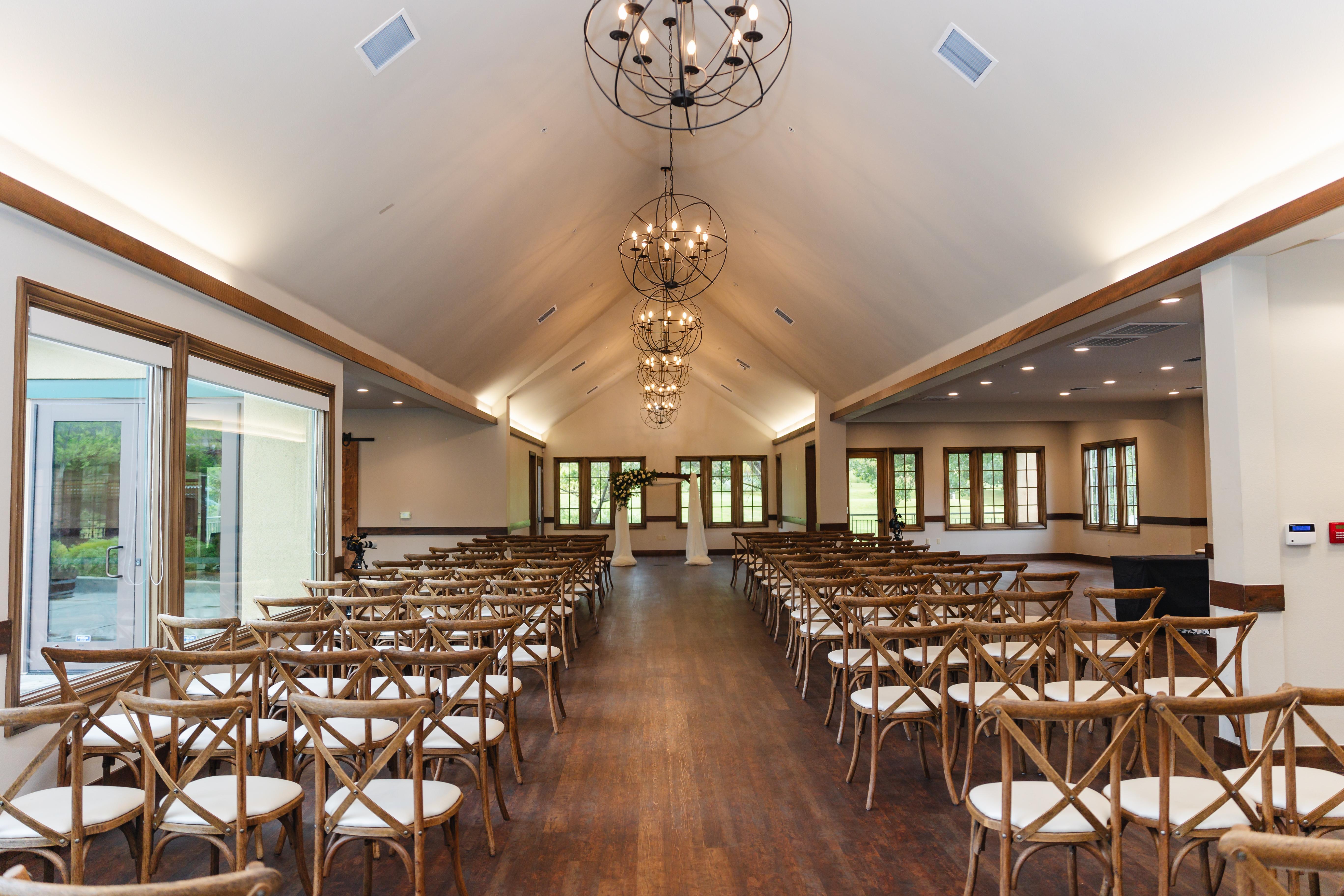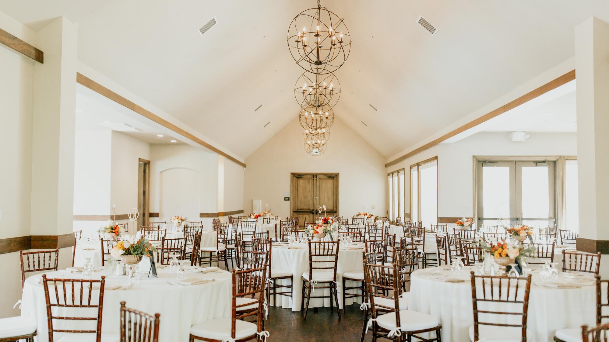 From rich wood accents, a grand stone fireplace, and rustic-chic accents, the Clubhouse and Garden Banquet Hall provide classic settings for a variety of party sizes. The Clubhouse is an intimate and cozy space, ideal for cocktail hour or smaller gatherings. Within the Garden Banquet Hall, sliding barn doors and farmhouse detailing combine with luxe amenities in a spacious reception space for a memorable celebration.