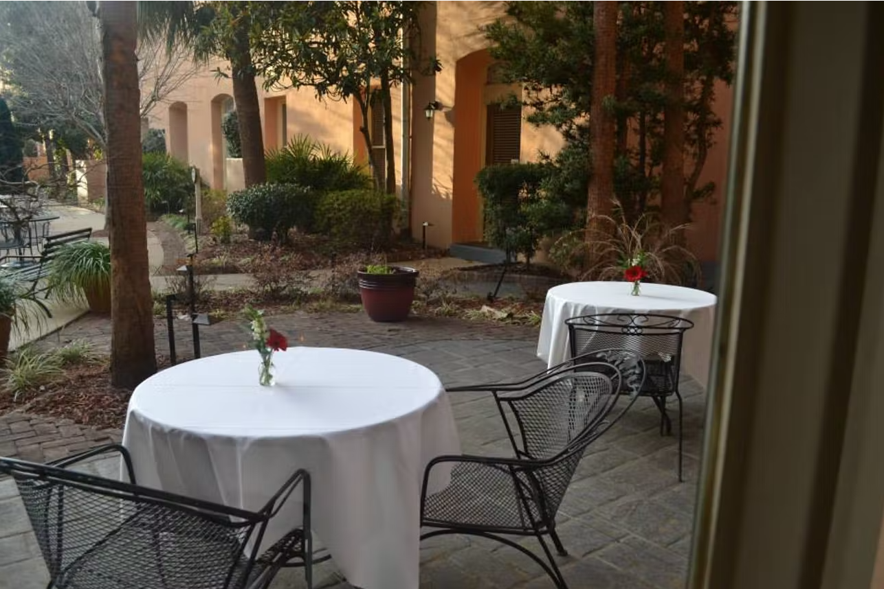 The French Quarter Room warmly welcomes an array of events with antique heart pine floors, classic crown molding, and French doors that open to a small, private courtyard for al fresco entertaining.