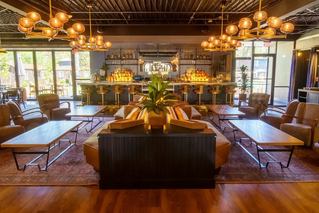 Don't be fooled by the name—The General Store is the High Country Motor Lodge’s main indoor gathering space, offering a lively and stylish setting for your wedding celebration. Fusing rustic elements with modern design, this highly curated space provides a truly photo-worthy backdrop. Guests can mingle at the long marble bar or relax in plush lounge seating, surrounded by bespoke lighting and polished wood floors.