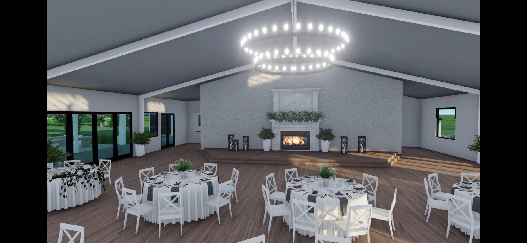 All lighting is on dimmer switches to provide the best lighting for all of your pictures. 72" round tables are provided with chairs. Farm tables are also available for use for the head table as well as wedding party and family, if you choose to use them. Multiple other table options are available to use as cake tables, sign in tables, ect.