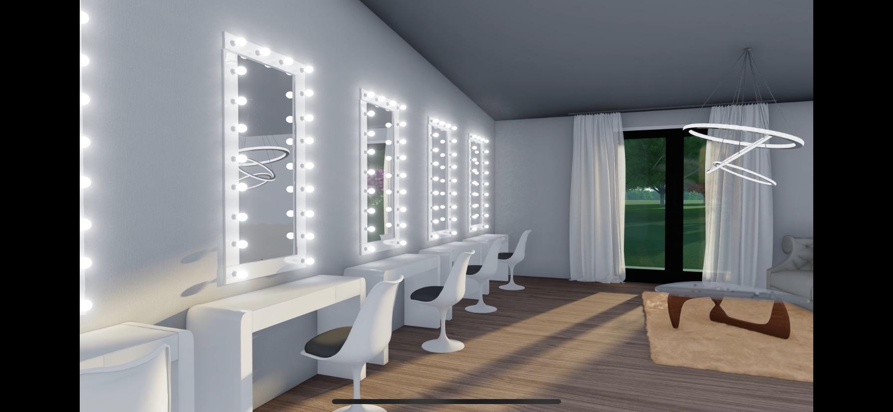 There are 5 lighted makeup/hair stations. A special nook is built in to showcase the wedding dress. A full shower is within the suite, as well as a coffee maker and mini fridge. This room has it's own thermostat so the bridal party can adjust the temperature to ensure comfort while getting ready.