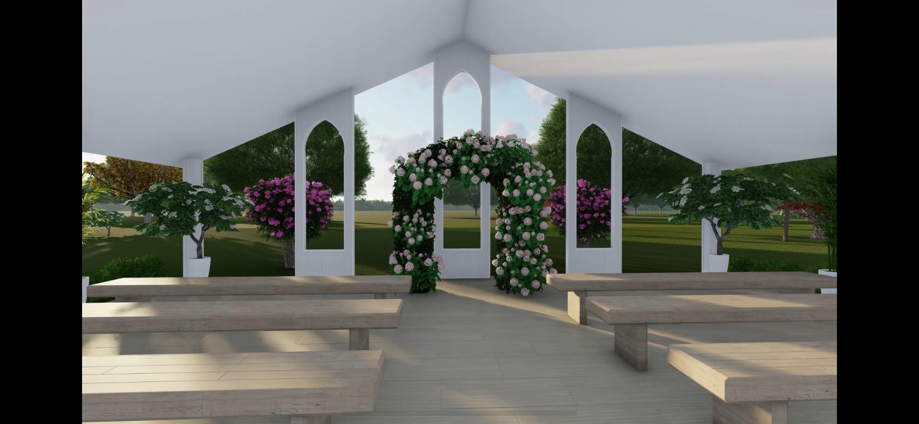 Have your outdoor wedding while being protected from the elements in our Open Air Chapel.