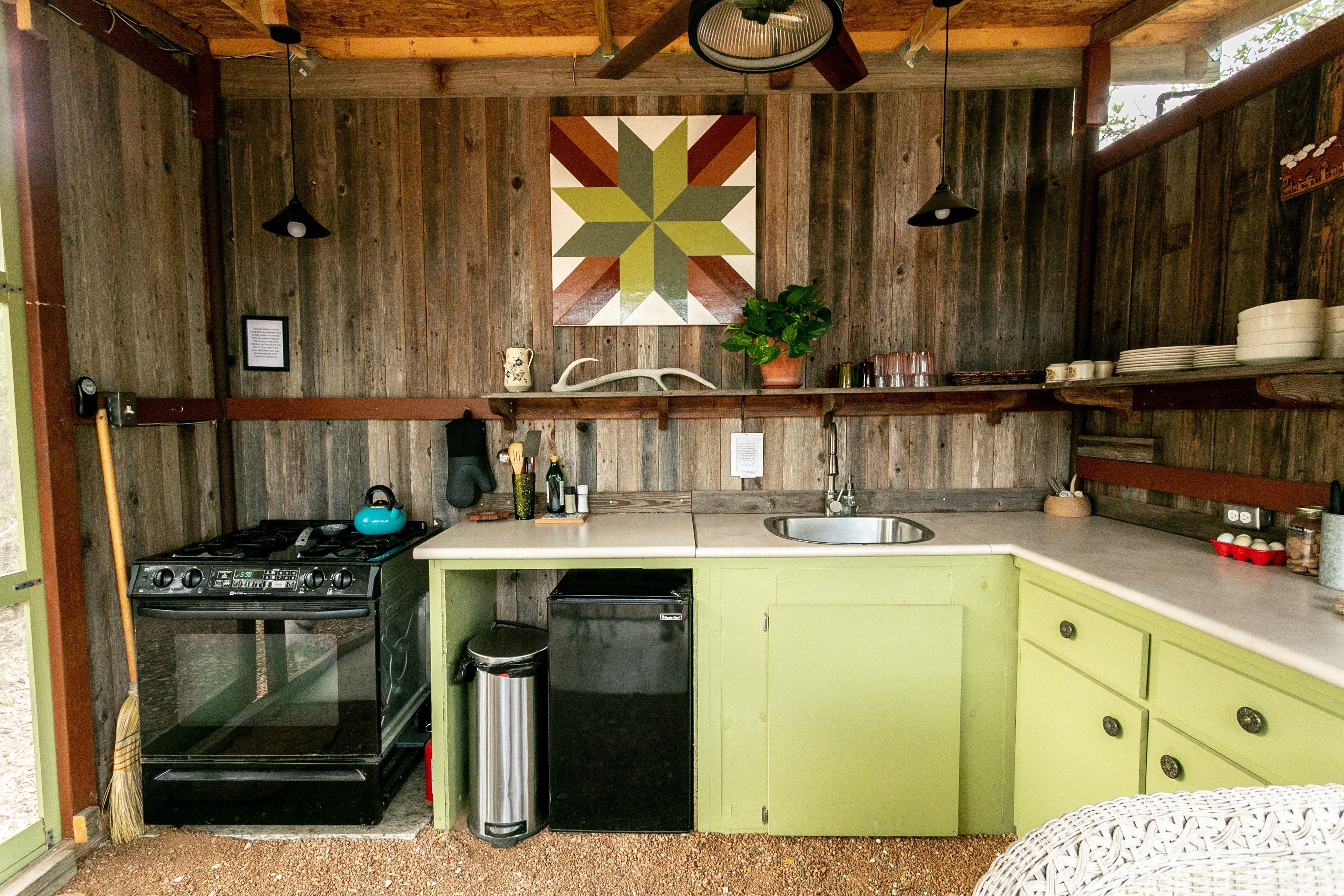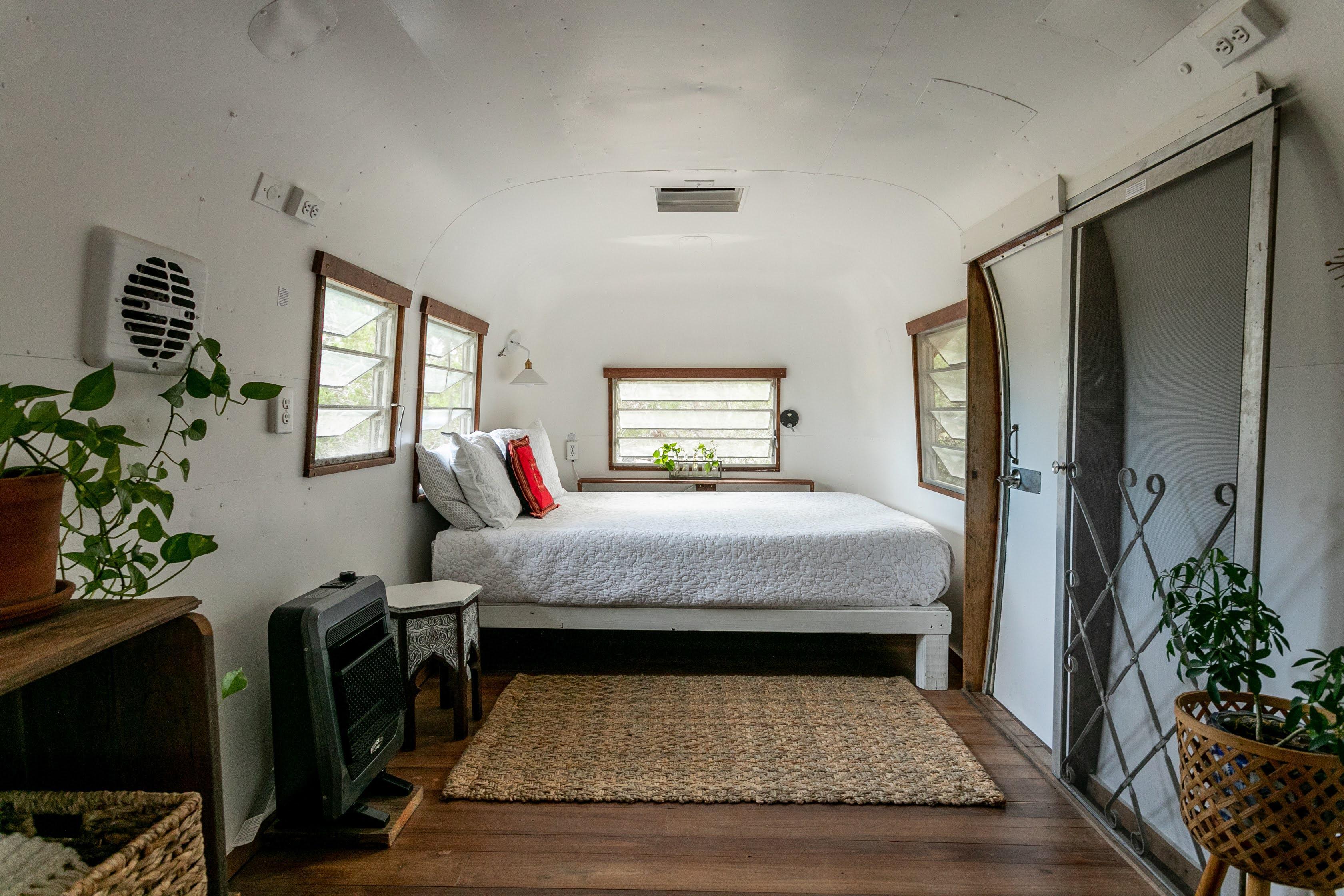 The Airstream site is perfect for your overnight guests and has 1 queen bed with an optional twin air mattress, separate kitchen, bathroom, indoor and outdoor shower.