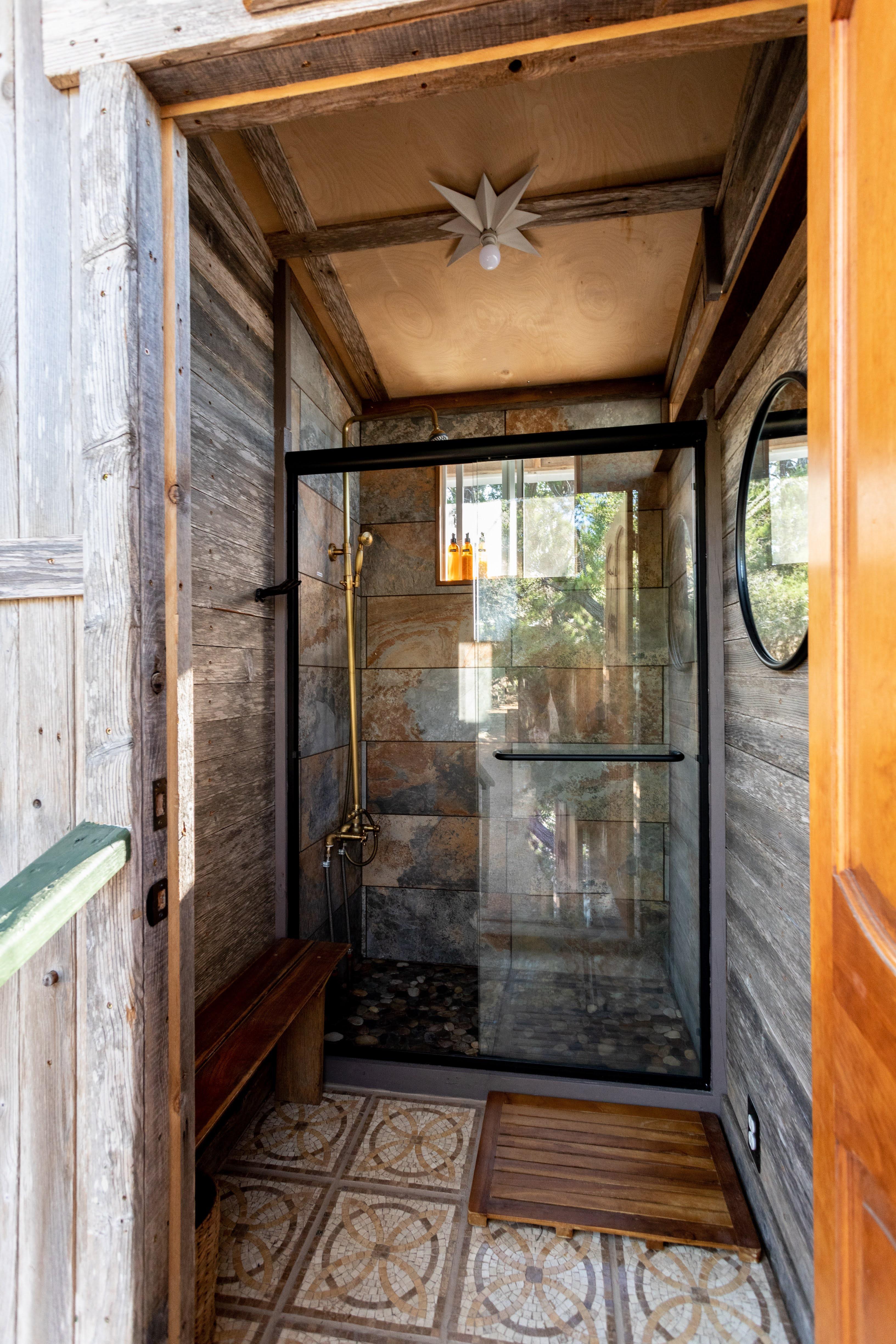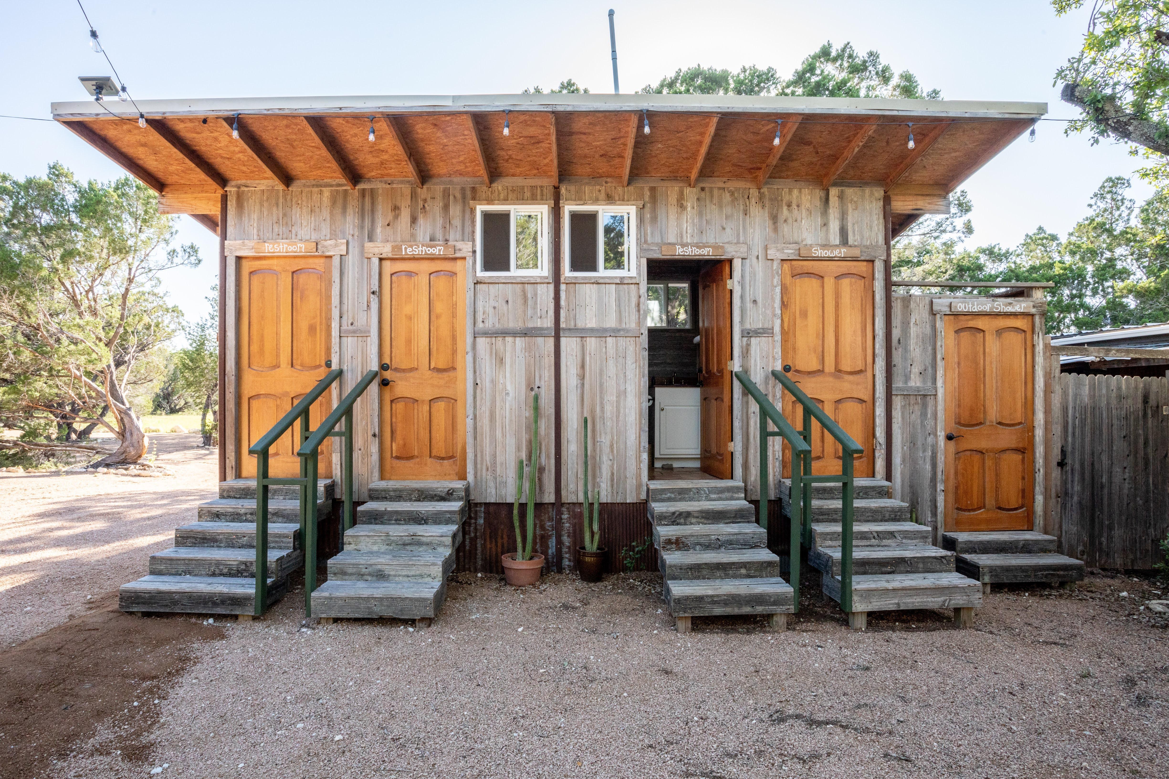 Our bathhouse features three private flushing restrooms, an indoor shower, and an outdoor shower, ensuring comfort and convenience for all guests.