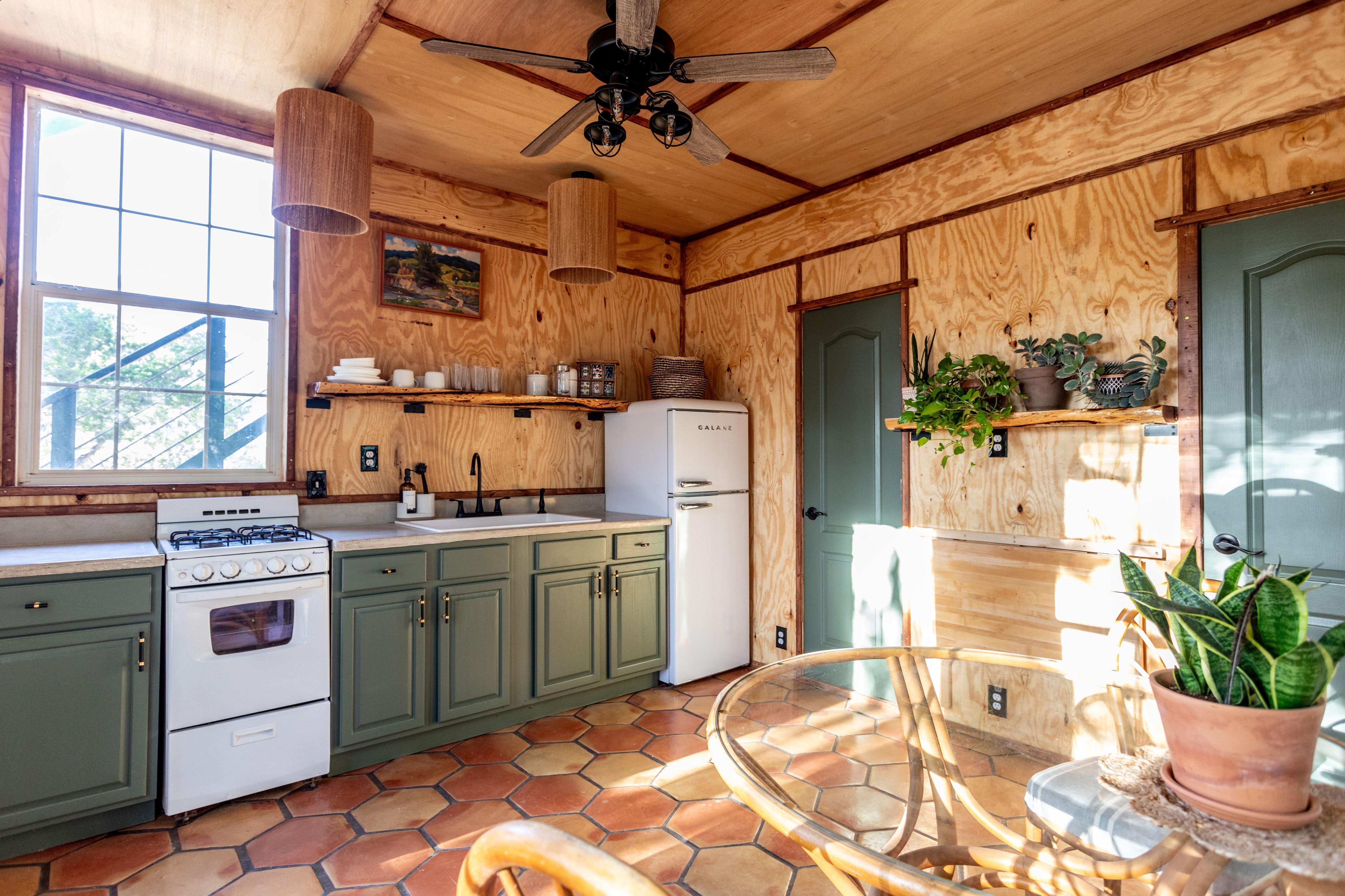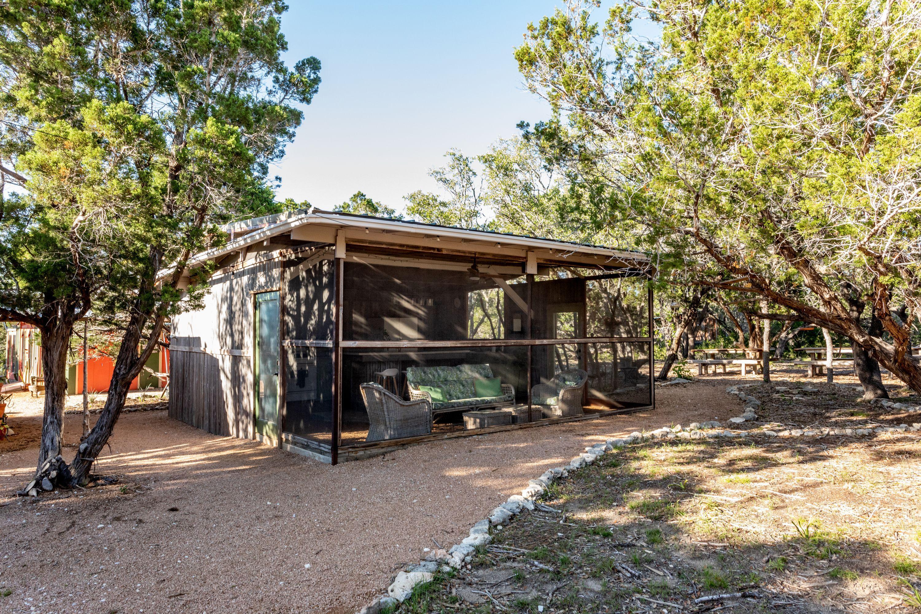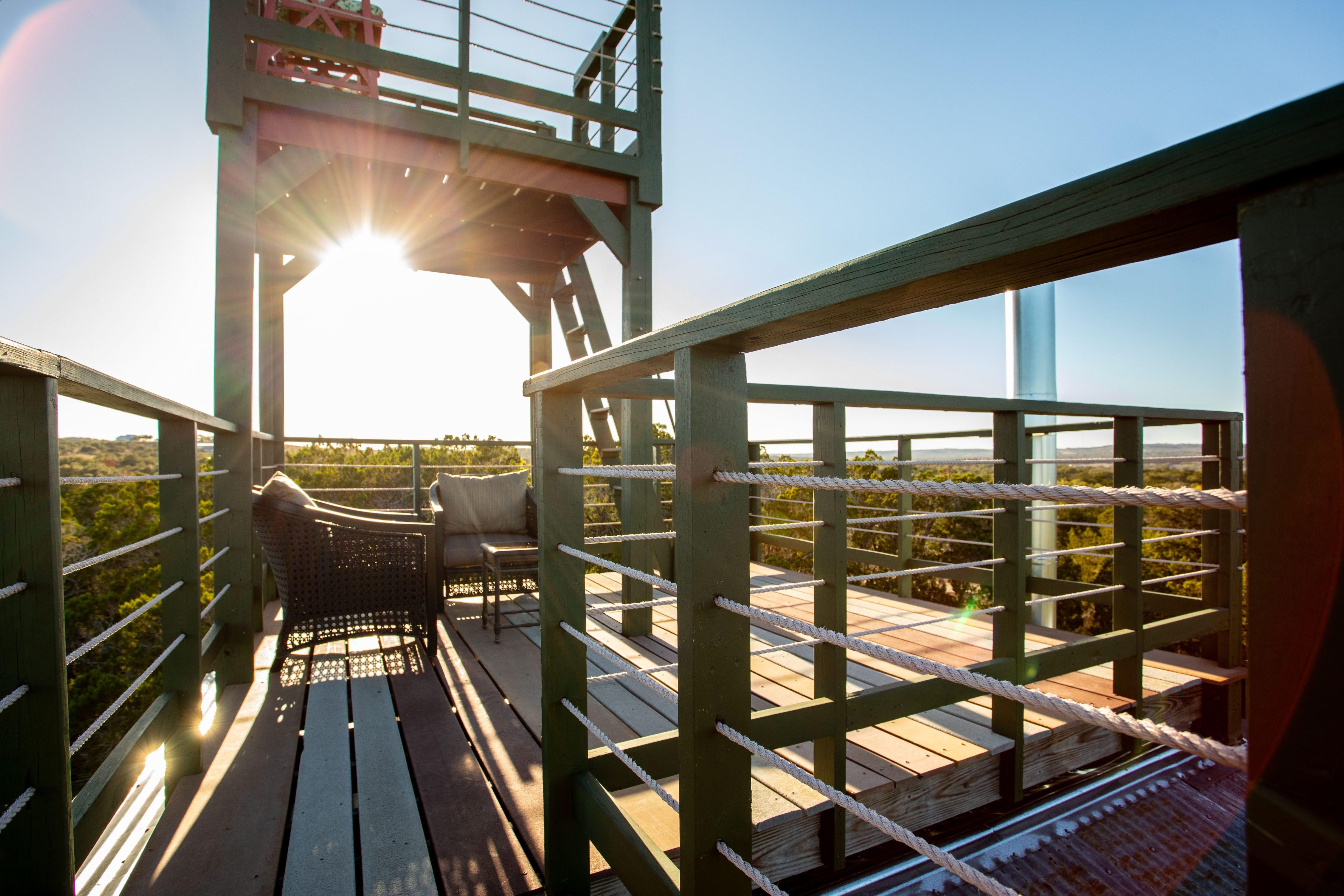 -full kitchen and bathroom with shower, screened in back porch downstairs -bedroom on 2nd floor -3rd and 4th floor roof deck/balcony with miles of hill country views