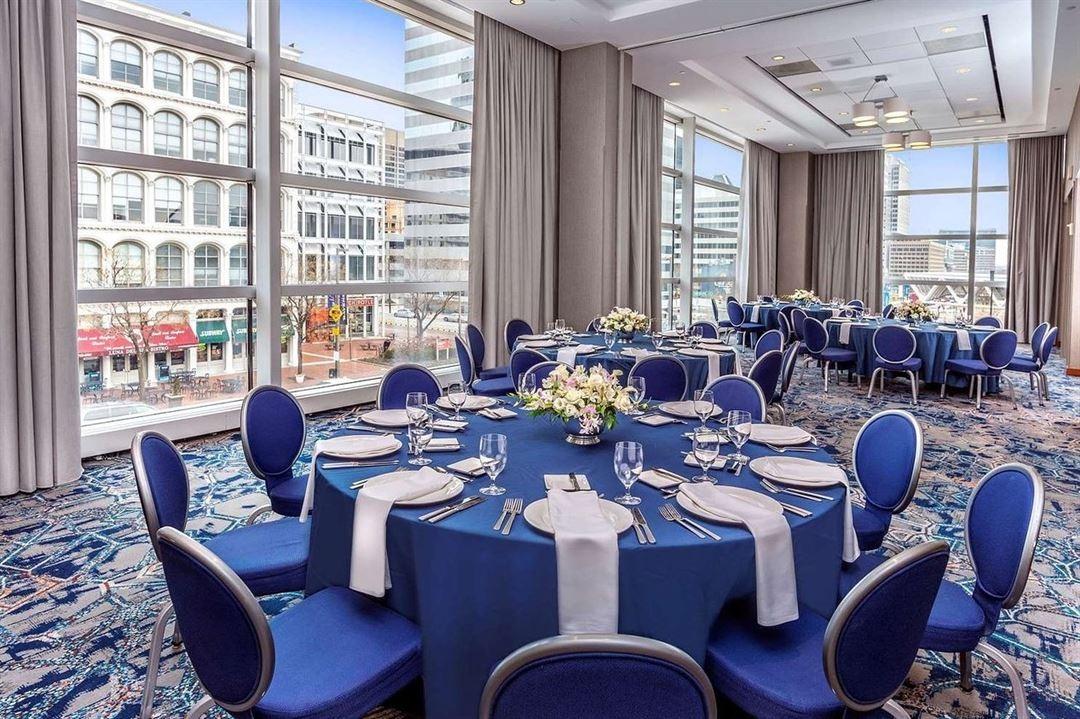 An enclosed sky bridge joins this award-winning hotel to the Baltimore Convention Center. Stage a conference in the 25,000 sq. ft. Francis Scott Key Ballroom or coordinate an intimate meeting in an elegant function room. The hotel offers full catering and banquet services with seasonal and custom menus.