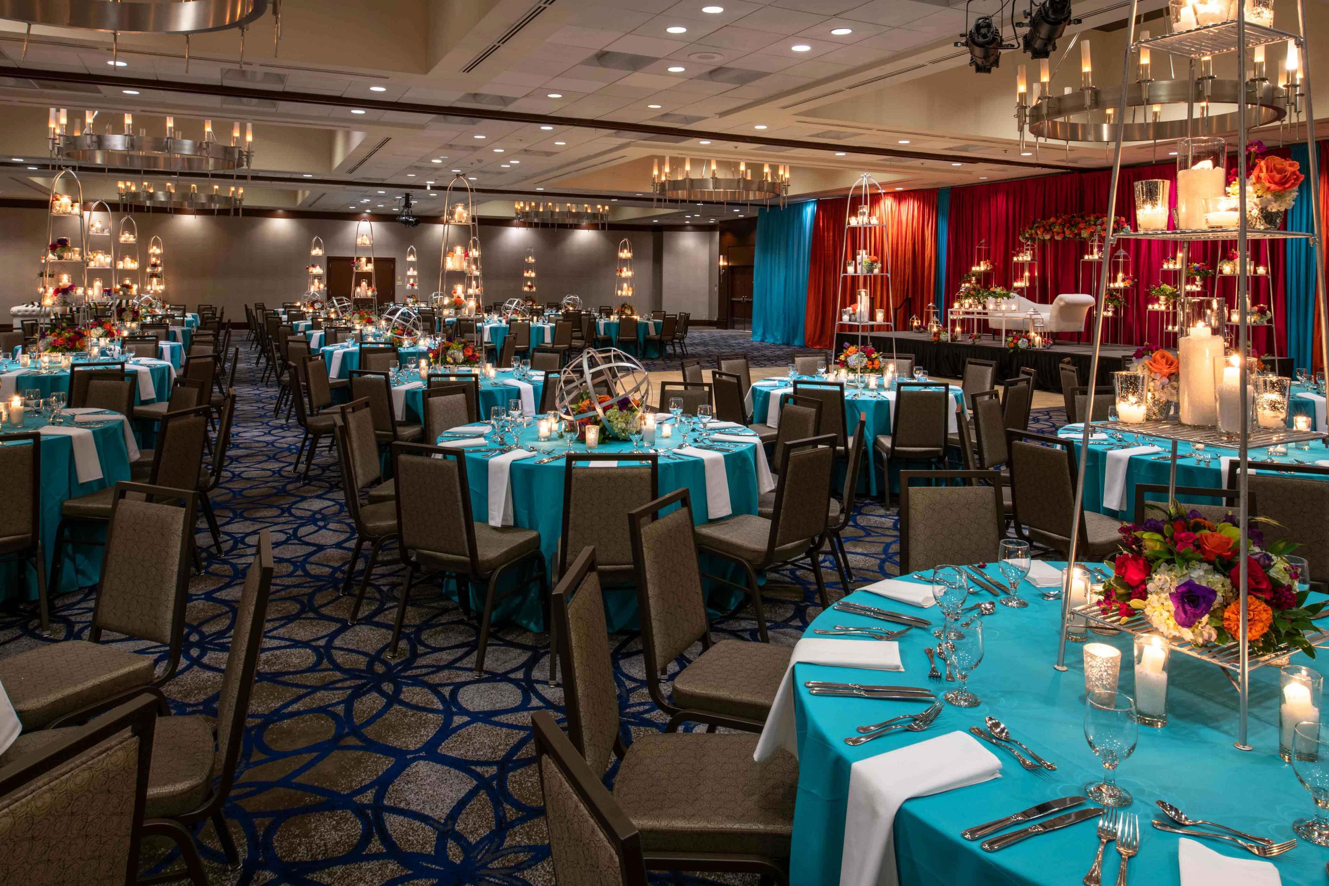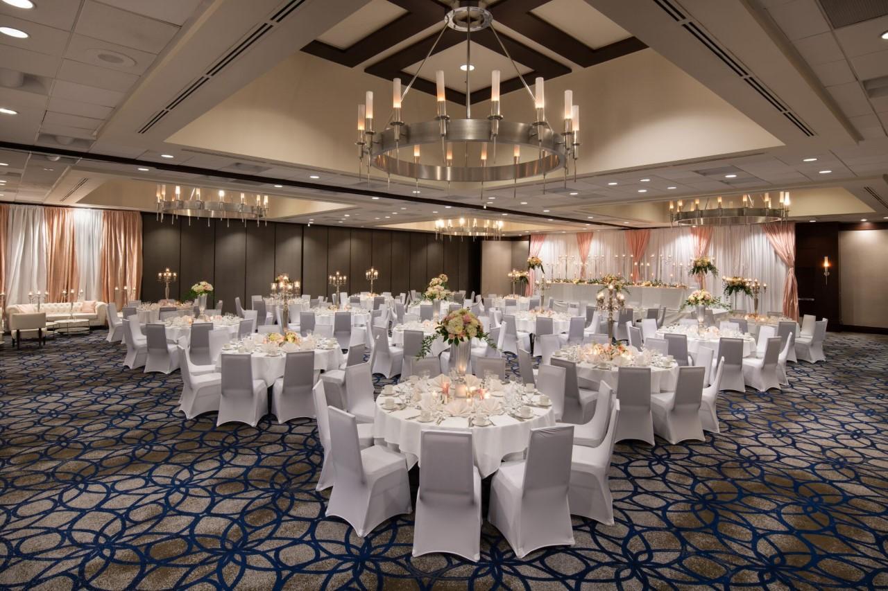 The Bellevue Grand Ballroom, our largest ballroom at the Hilton Bellevue, is located on the first floor. Spanning 9,652 sq. ft., it can be divided into four sections (Salon A, B, C, and D) and features a spacious foyer for hosting cocktail reception and registration. Dimmer chandeliers with selectable light colors add a touch of elegance to the ballroom.