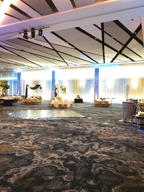 The ballroom walls can be modified to customize the size of room that is suitable for your wedding size. The cocktail reception and foyer space provides an open airy feel for larger parties to mingle in comfortably.