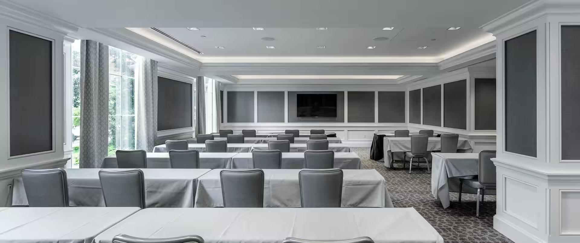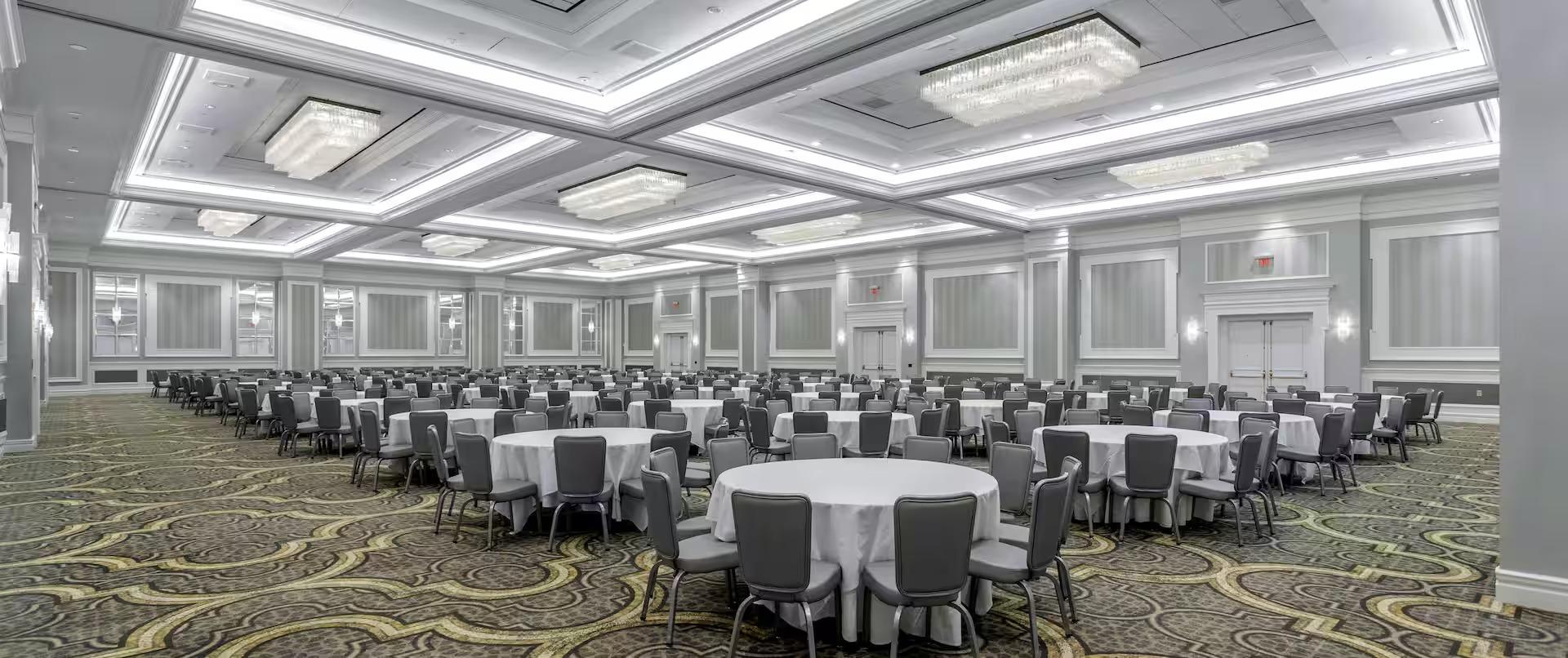 The Easton Grand Ballroom features refined architectural details, including intricate moldings, soft ambient lighting, and polished floors. Our built-in audiovisual system, adjustable lighting controls, and dedicated staging areas ensure every moment of your wedding is seamless and magical. The space can be arranged with elegant table settings, linens, chairs, and centerpieces, all curated to complement your theme. For added convenience, couples and guests enjoy easy access to the on-site concierge, catering services, and connecting spaces such as pre-function areas, allowing every celebration to flow effortlessly from ceremony to reception.