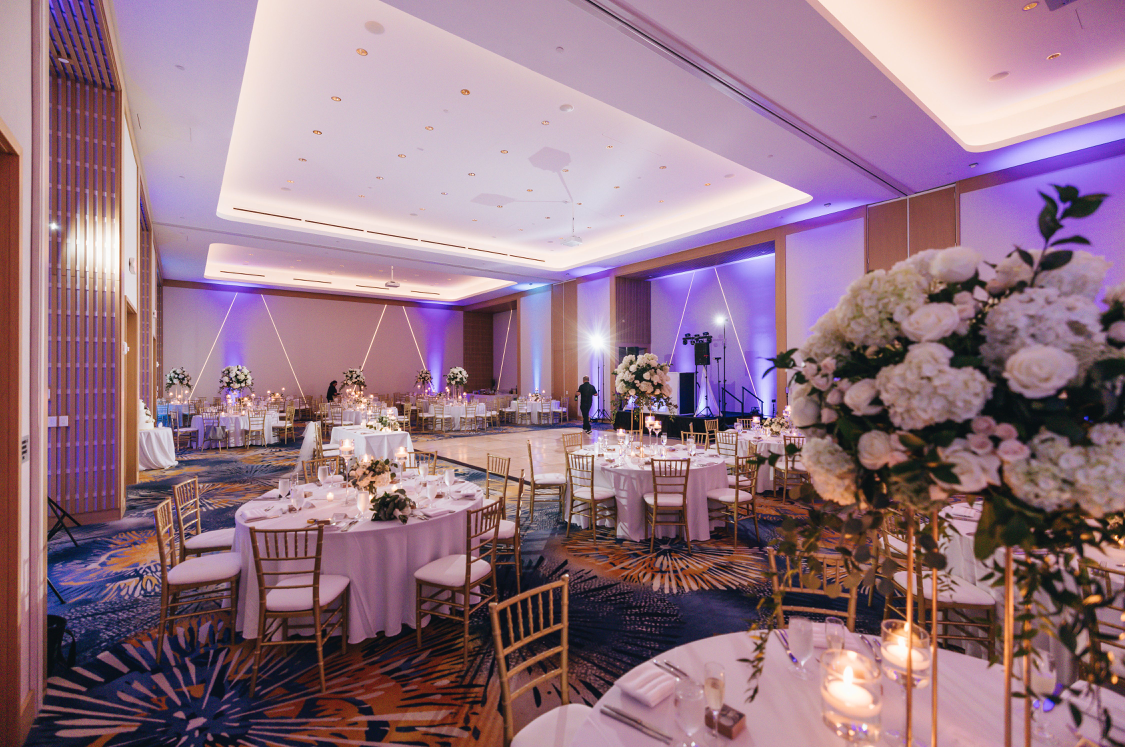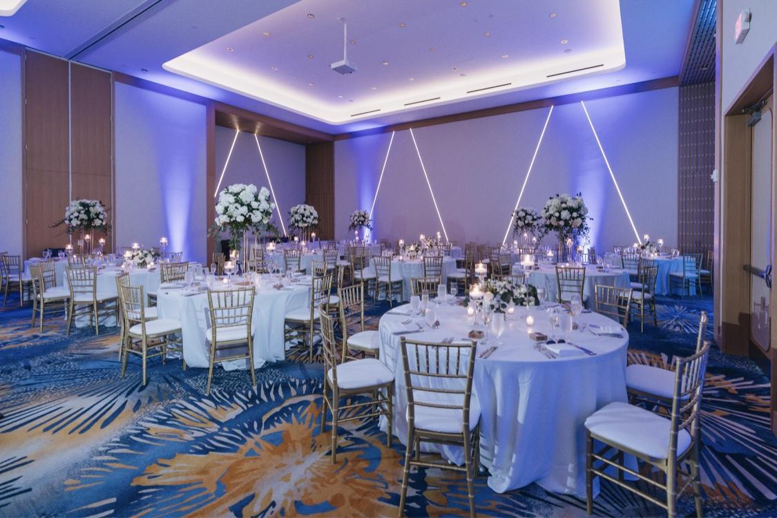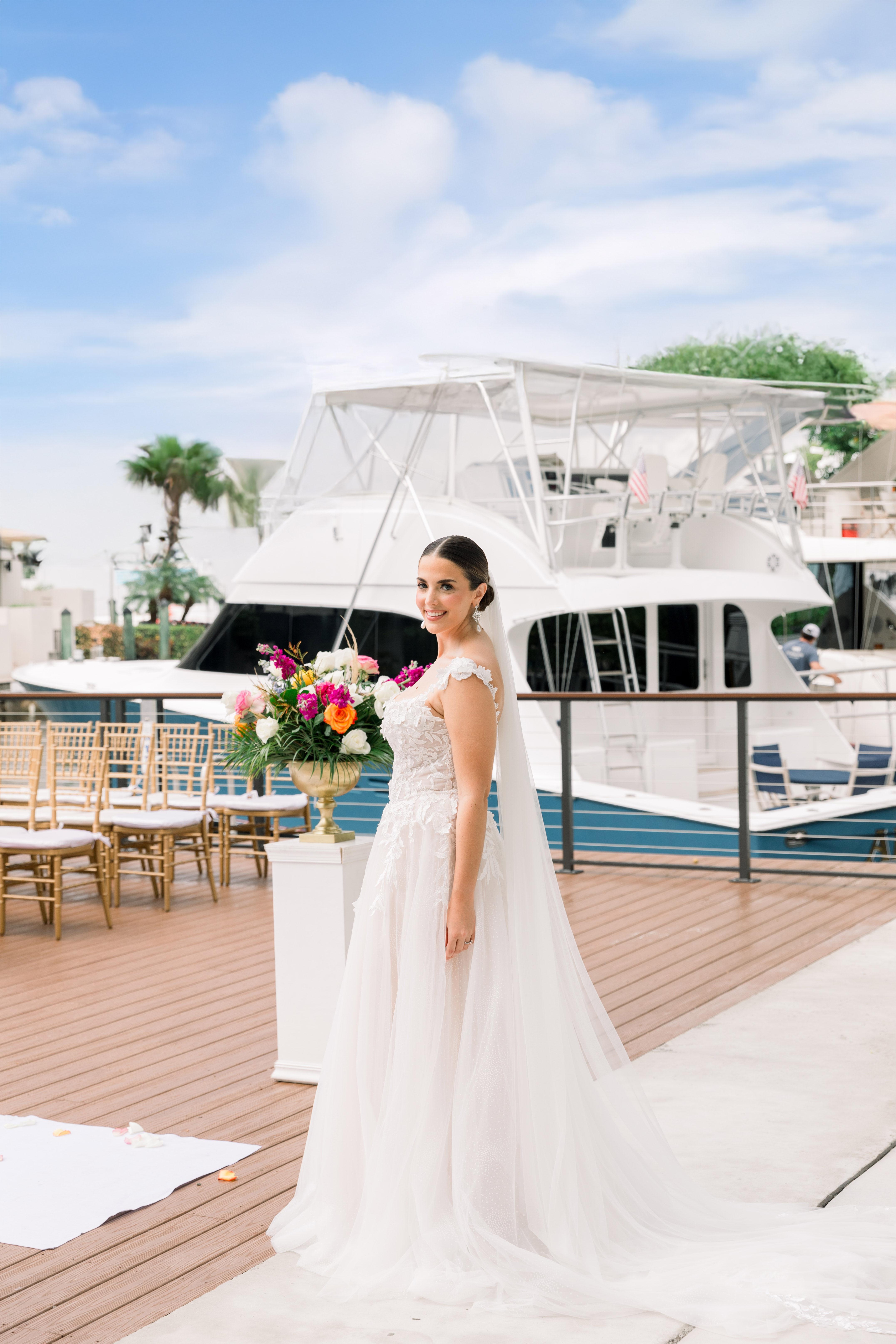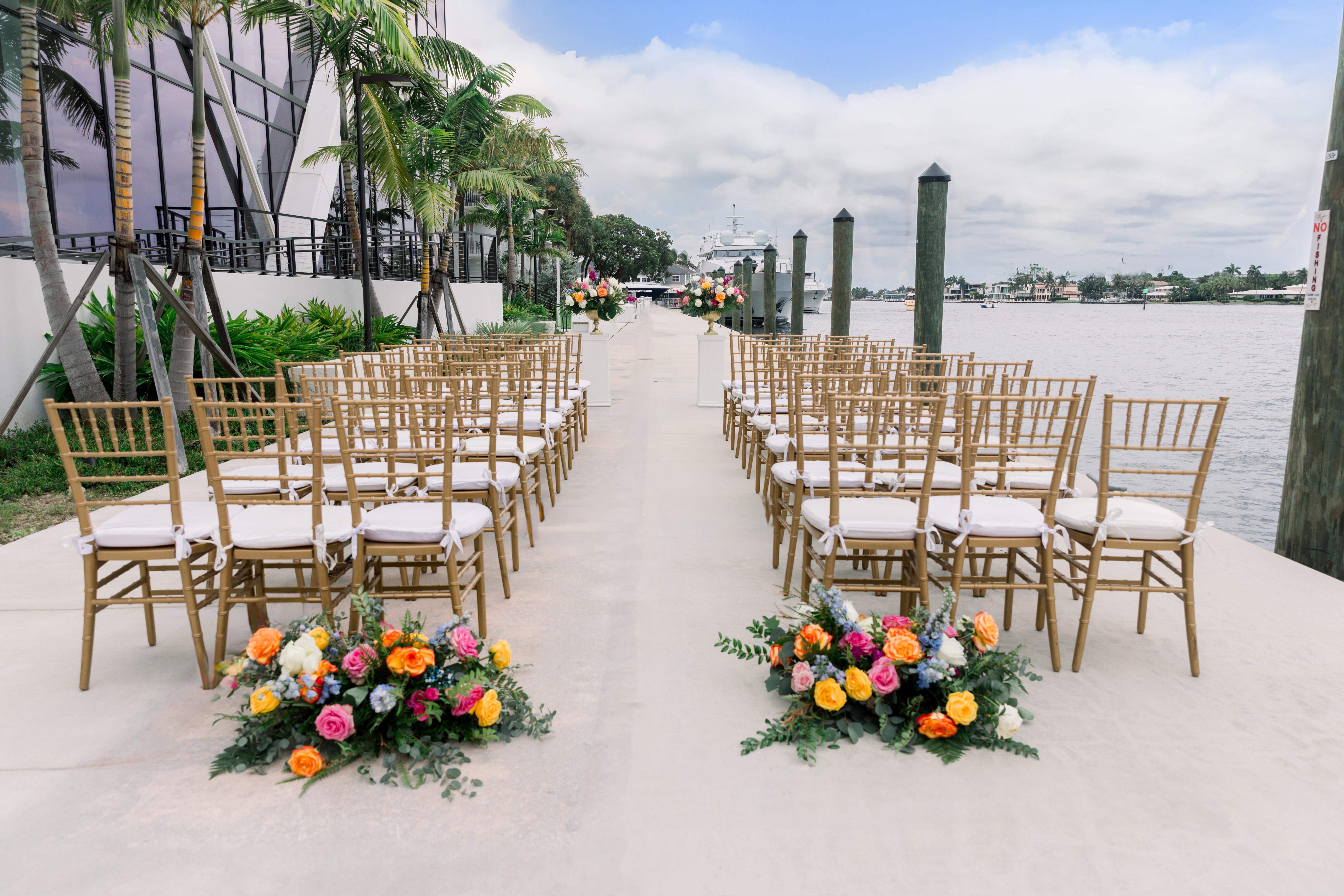 Featuring 24-foot high ceilings and floor-to-ceiling windows overlooking the sparkling Intracoastal Waterway, this brand new venue is a stunning setting for your wedding.