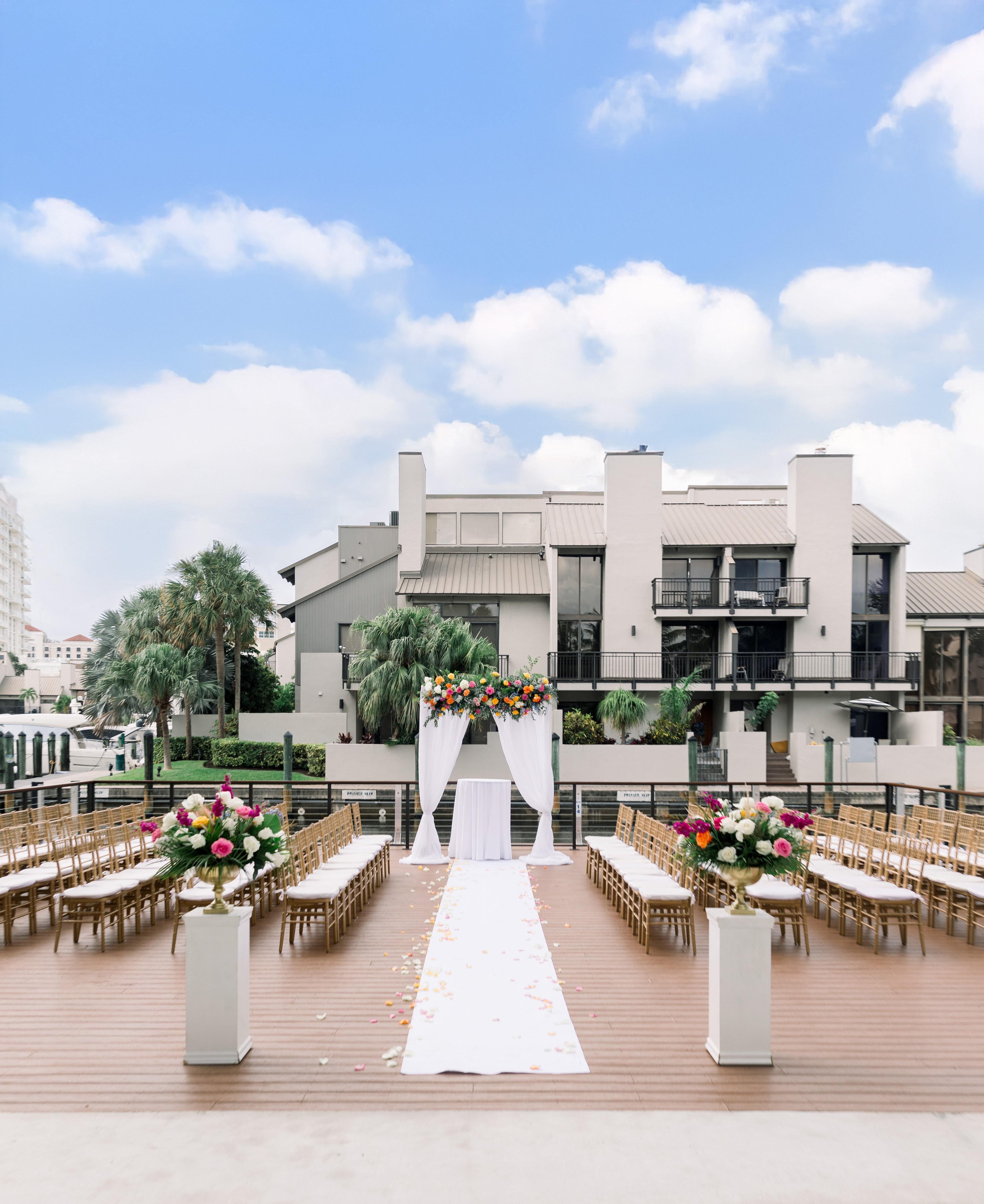This waterside deck between the marina and tropical pool offers a tranquil, tropical oasis perfect for ceremonies and cocktail hours.