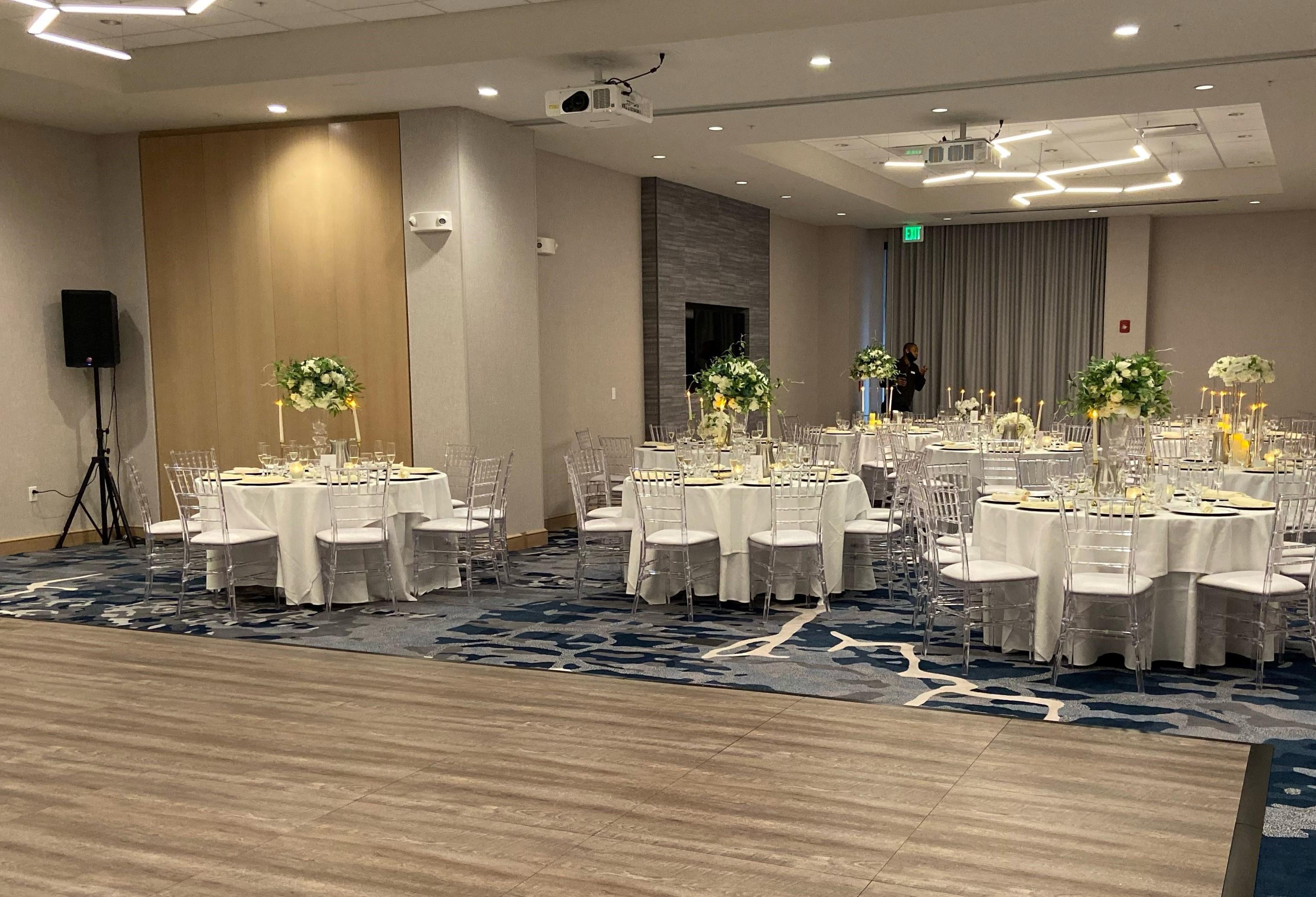 -Dimmers for total light customization -Optional Hardwood Dancefloor -60' Rounds and chairs set by our event staff - Additional 900 sq ft of pre-function space for your use -Private Outdoor Access to our courtyard