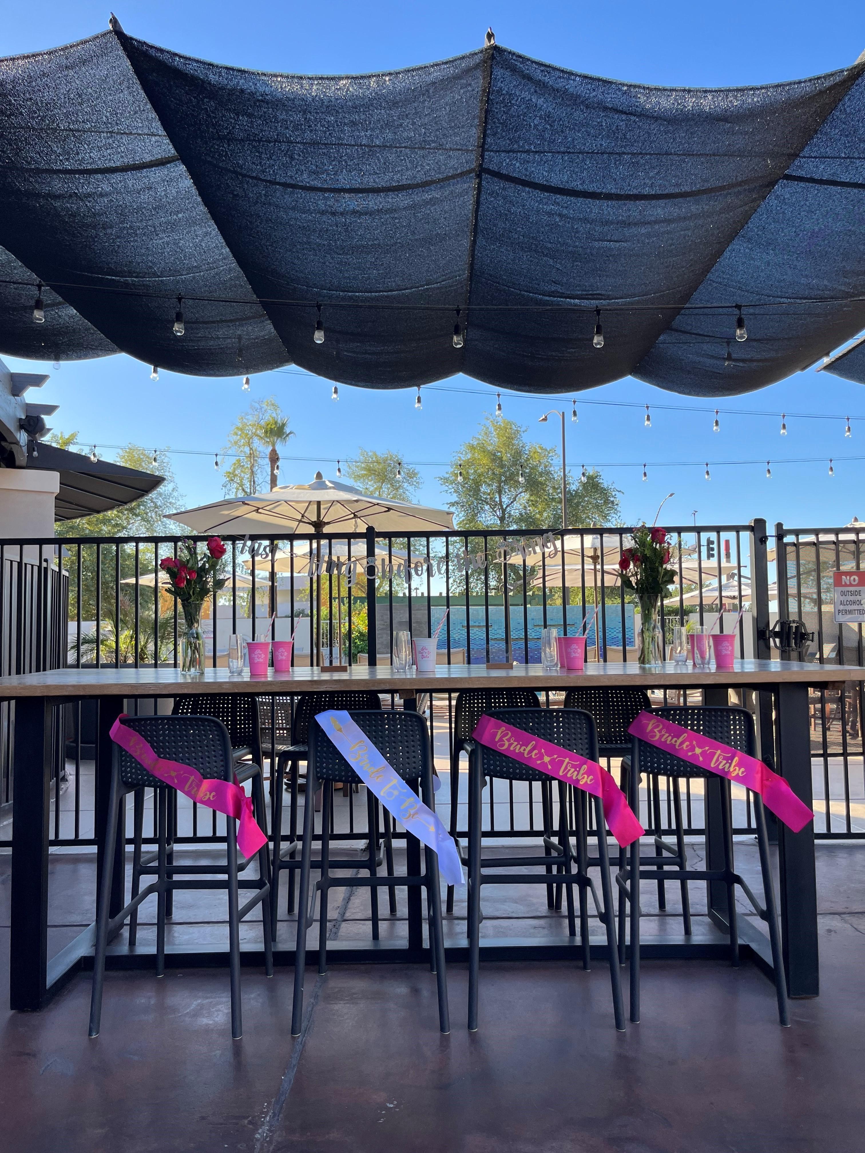 just a little over 400 sq ft. The Saguaro patio is the perfect spot for bachelor and bachelorette groups to rent to enjoy some cocktails and fun decorations for their last fling before the ring.