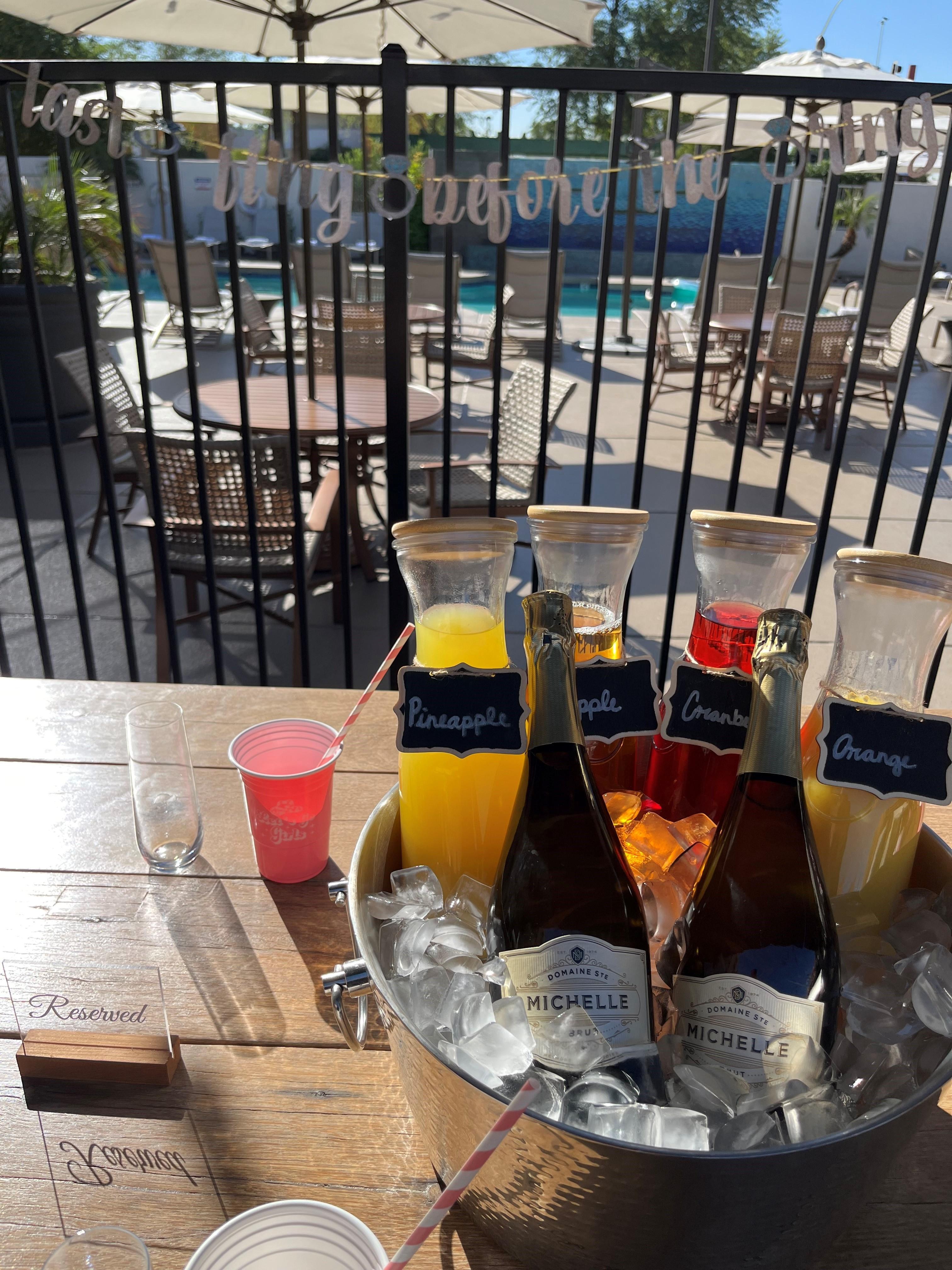 - 1 mimosa kit (bottle of champagne and 2 juices) - Special Decore upon request
