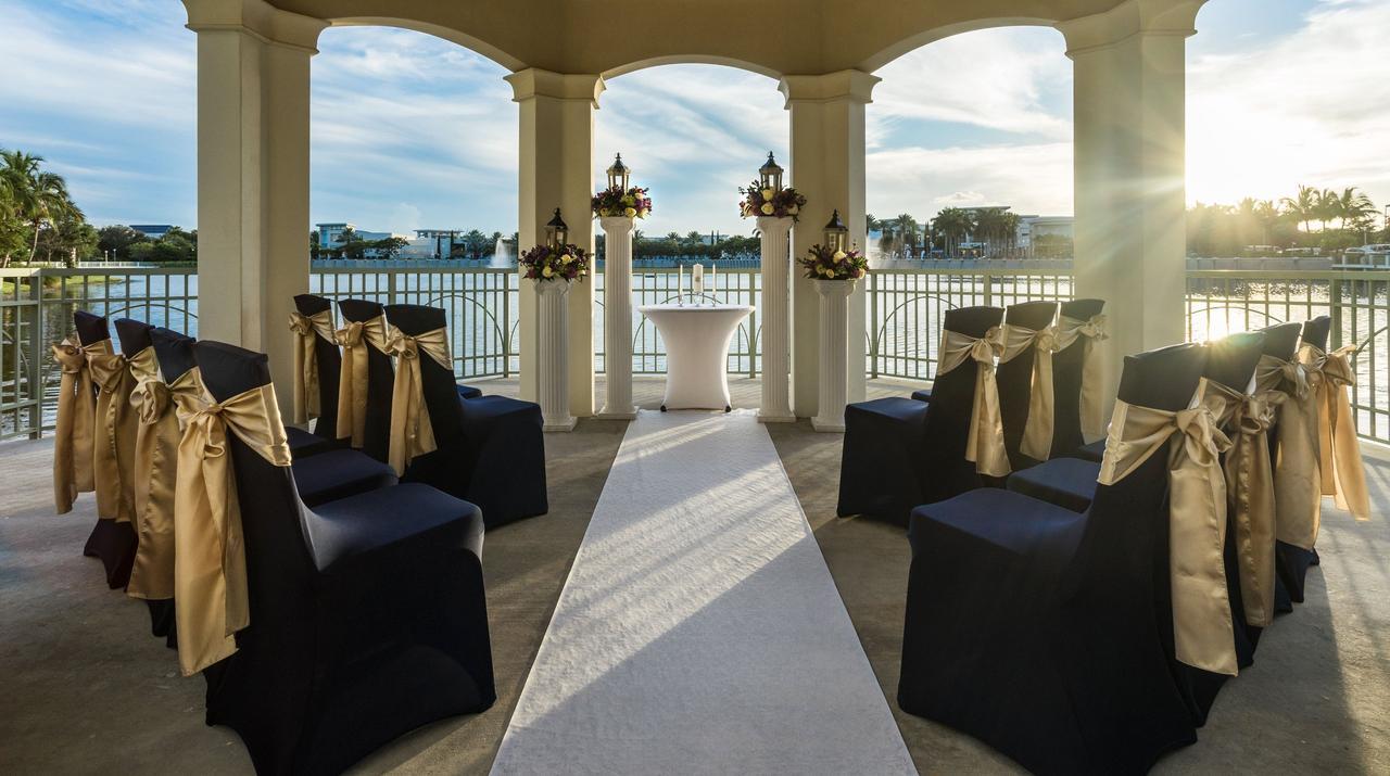 Hilton Garden Inn Palm Beach Gardens is a hotel wedding venue in Palm Beach Gardens, Florida. This waterfront venue is located just moments away from gorgeous beaches, famous golf courses, shopping, dining, entertainment and the Palm Beach International Airport. The experienced staff and beautiful event spaces make this venue a great option when choosing where to host your big day. At Hilton Garden Inn Palm Beach Gardens, there is over 5,000 square feet of flexible event space, including seven meeting rooms, three outdoor spaces, and two ballrooms. These spaces are great for corporate events, bridal showers, engagement parties, rehearsal dinners, elopements, and of course, wedding ceremonies and receptions. For your wedding, you can have up to 120 of your closest friends and family join you in the Gardens or Gulfstream Ballrooms for a spectacular event experience.
