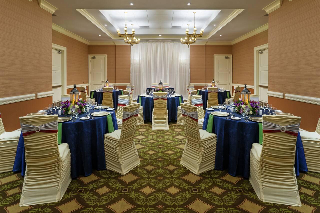 The Gulfstream Ballroom exudes an intimate yet elegant charm, occupying a refined space of 1170 square feet that can be easily transformed into two distinct sections. This versatility lends itself perfectly to a variety of occasions, making it an ideal choice for weddings, cocktail parties, rehearsal dinners, wedding ceremonies, receptions, and welcome parties.