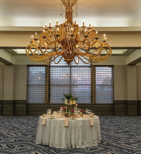 Beautiful iconic meeting room famous for hosting some of the most beautiful weddings in Houston. Iconic chandeliers, tall windows and beautiful pre function space for cocktails