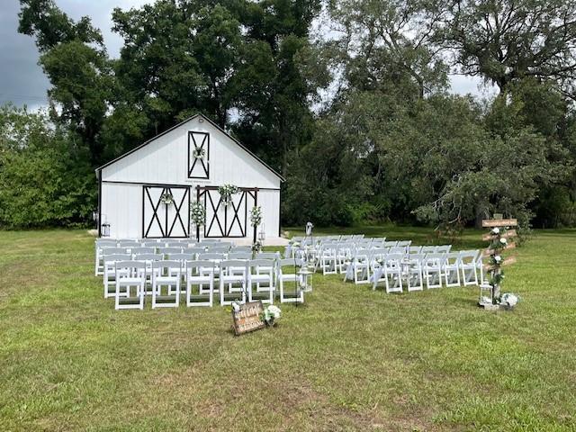 Our beautiful White Barn combines rustic with elegance and offers a picturesque backdrop in a tranquil setting for your ceremony. Surrounded by oak trees on our three-acre green space, in full view of our horses and paddock, our White Barn is also a beautiful backdrop for family and wedding party portraits.