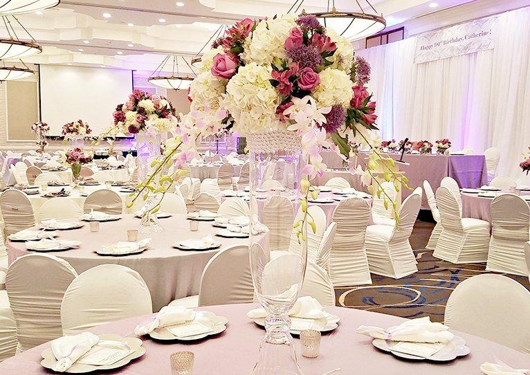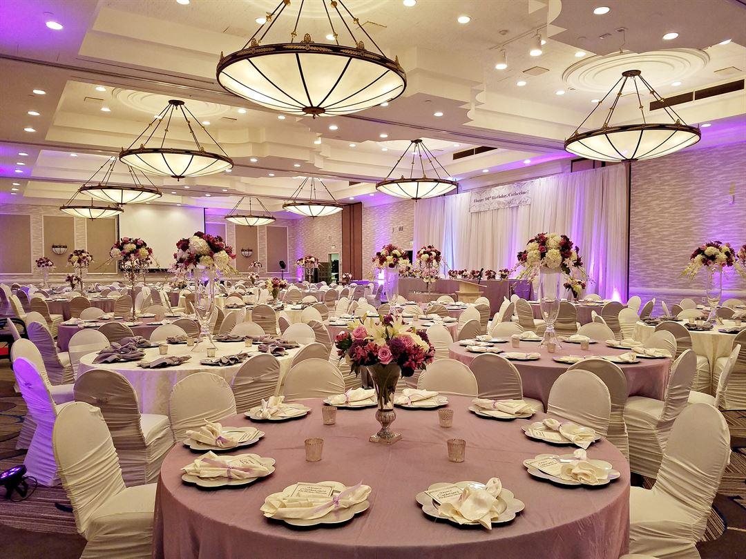 A ballroom wedding is for the couple who dream of a grand, glamorous celebration. It offers a level of elegance and luxury that turns any wedding into a memorable event. TOur newly renovated Churchill Ballroom and pre-function space can hold up to 250 guests, plus a dance floor! Saratoga Ballroom is smaller and more intimate with space for up to 50 guests. Both are modern and elegant spaces to host your unforgettable wedding reception.
