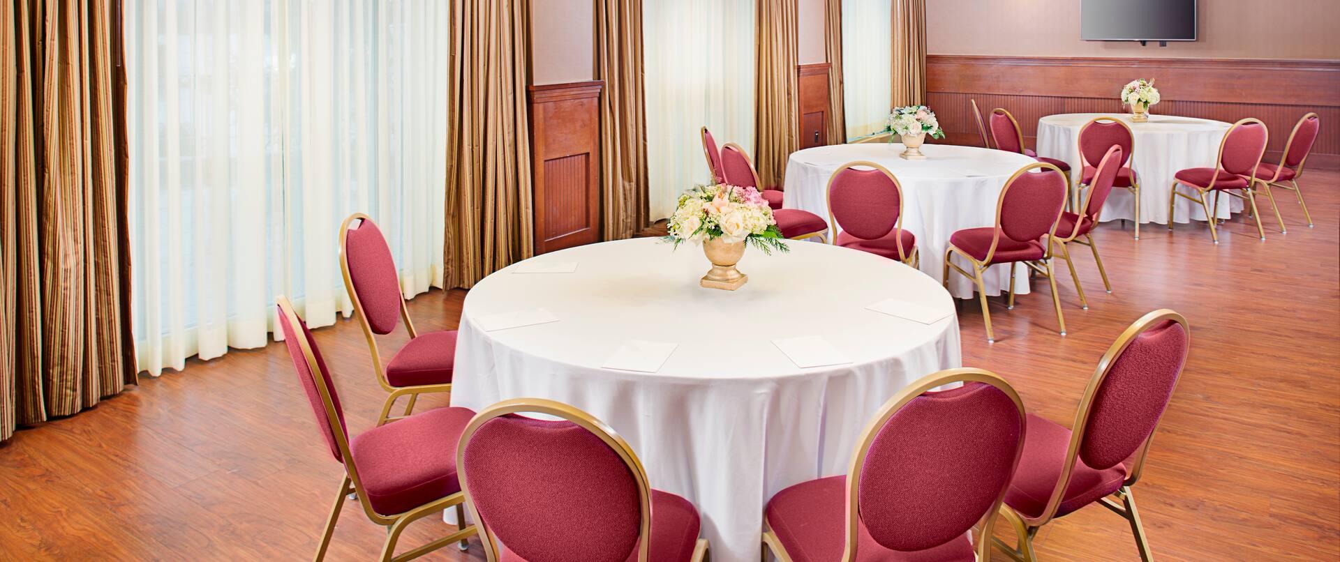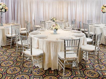 Celebrate your wedding in our large ballroom, smaller suite or on our outdoor reception area. Our packages include a champagne or cider toast, a three-course meal and a tiered wedding cake.Host up to 500 guests in our light-filled boardrooms and ornate ballrooms. We have custom catering and banquet menus, A/V equipment rental, and meeting packages. Our expert planners are on hand to assist with every detail.