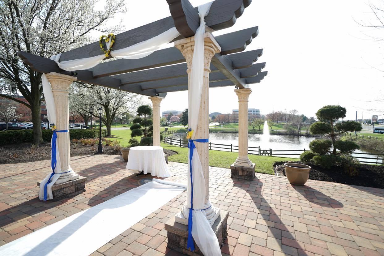 The Patio offers a beautiful view overlooking the Pond and flowing fountain. The perfect place for an outdoor ceremony.